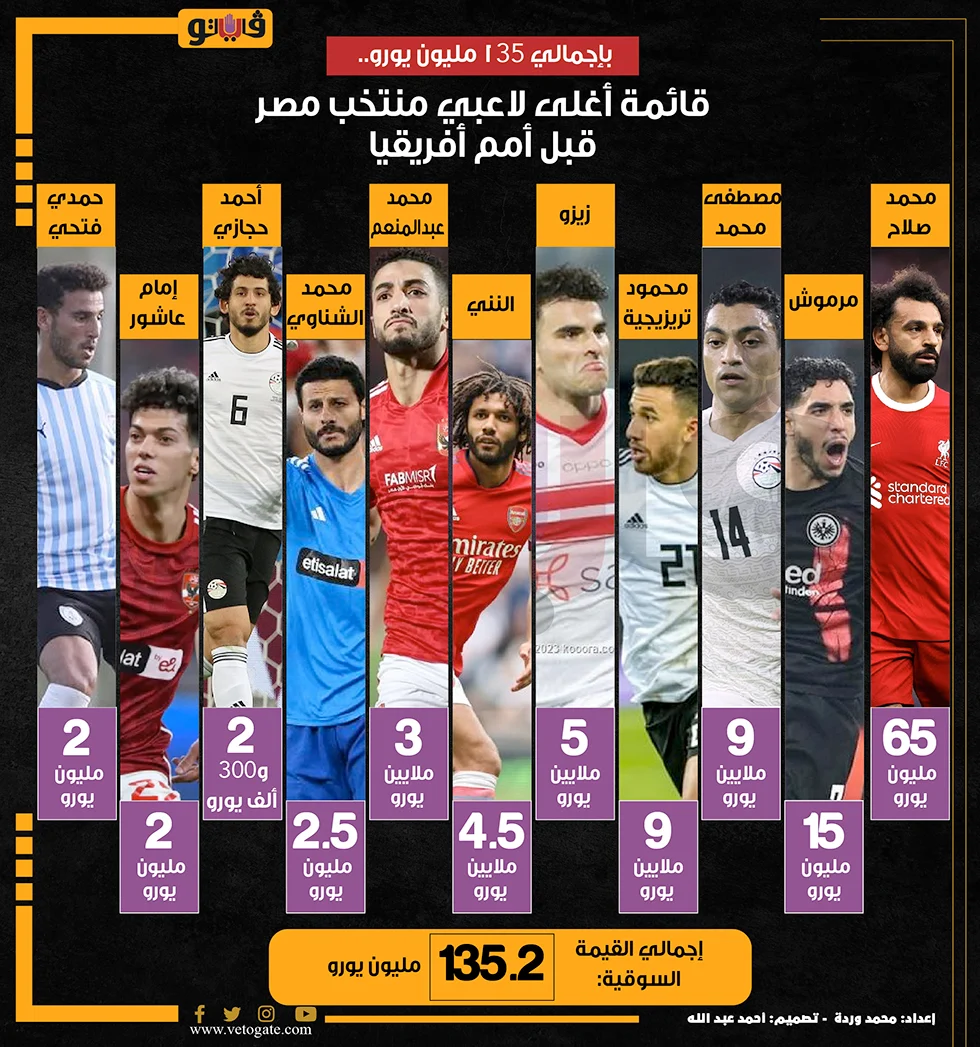 وكان البرتغالي روي فيتوريا المدير الفني لمنتخب مصر الأول لكرة القدم، أعلن السبت الماضي، أسماء 27 لاعبا يمثلون قوام القائمة النهائية للفراعنة في بطولة كأس الأمم الأفريقية 2024، قبل أن يعلن بعدها بيومين إستبعاد لاعبين من القائمة بداعي الإصابة وهما أحمد نبيل كوكا لاعب الأهلي وأسامة جلال مدافع بيراميدز.