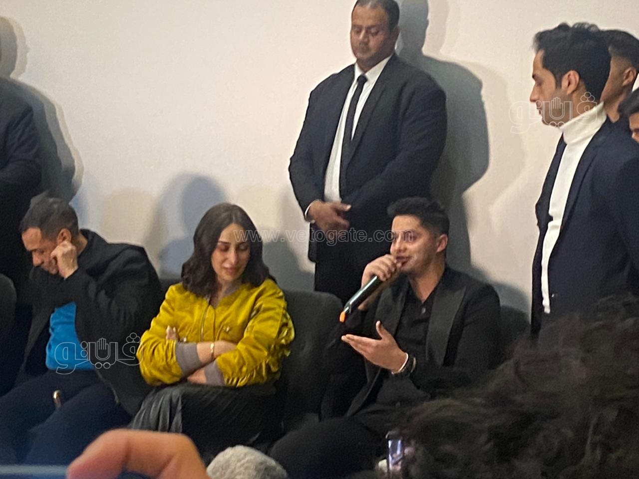 وحرص المطرب عنبة علي إلتقاط بعض الصور التذكارية مع الجمهور المتواجد في السينما أثناء العرض الخاص لفيلم عصابة عظيمة.
