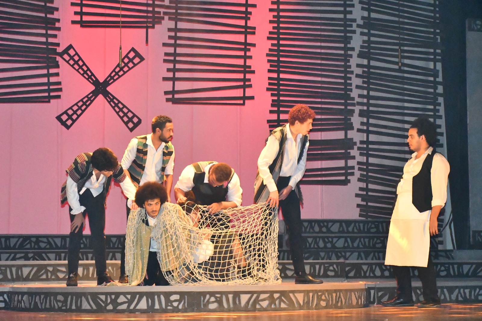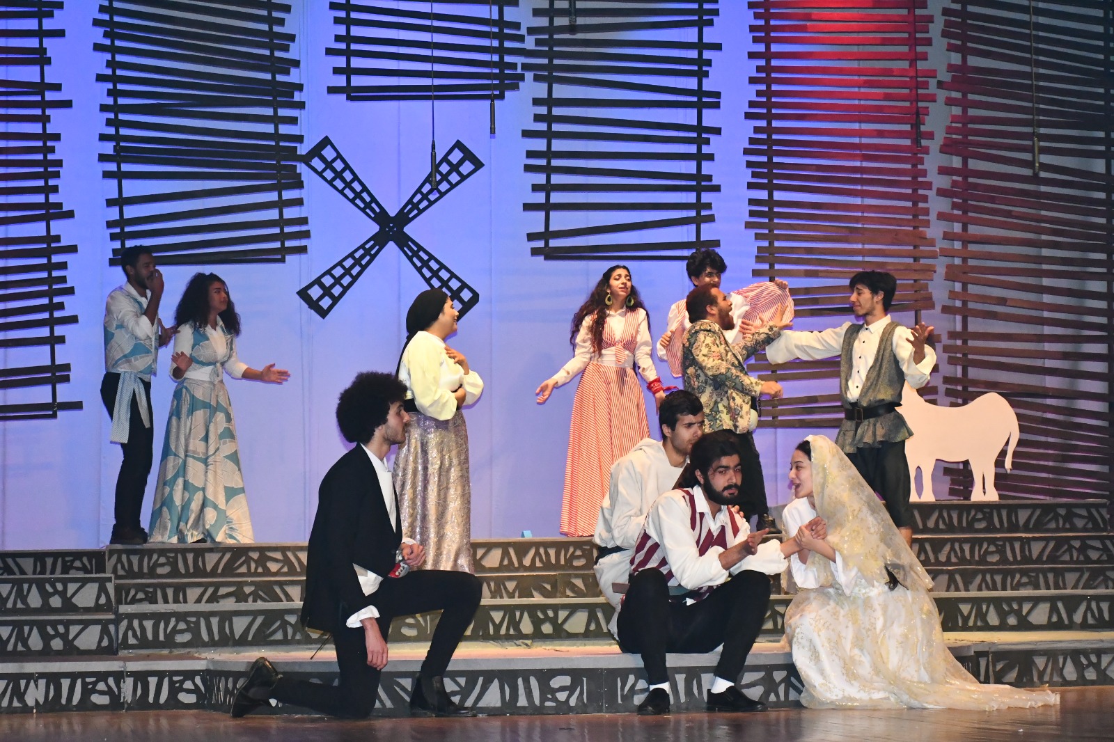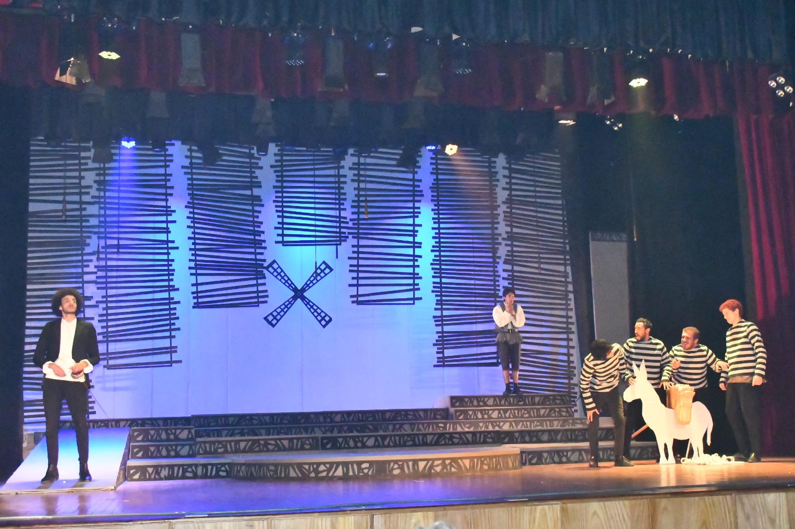 حيث عرض الطلاب مسرحية "دون كيشوت" للفرنسي المعاصر «إيف جامياك» التي تتحدث عن أسطورة دون كيشوت، الذي عاش في قرية إسبانية صغيرة واختار سانشو تابعًا، ليجوبا العالم بحصان وحمار بحثًا عن الحقيقة المطلقة، حتى أنه خيل لهما أنهما صعدا إلى السماء في سبيل ذلك.
