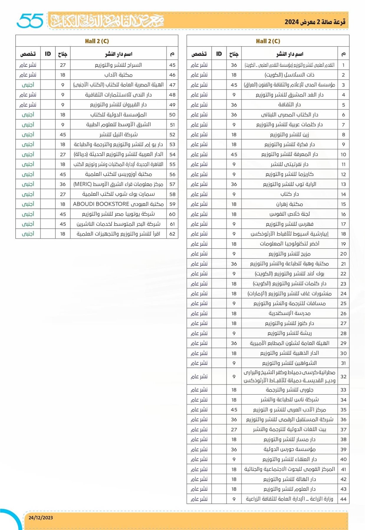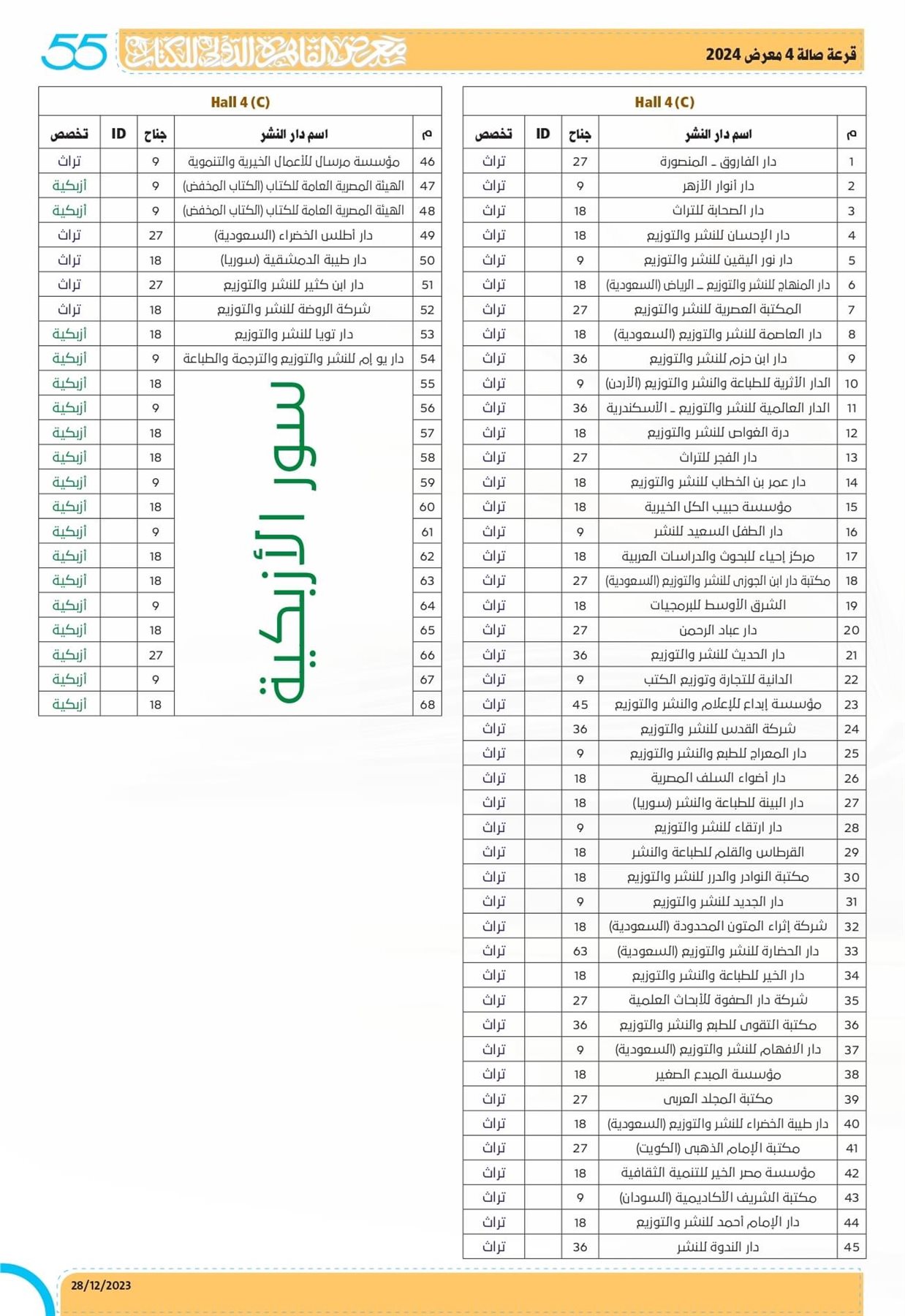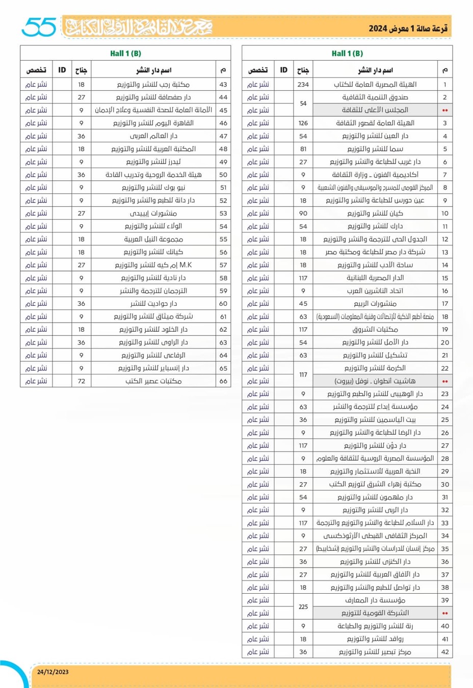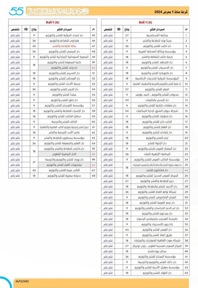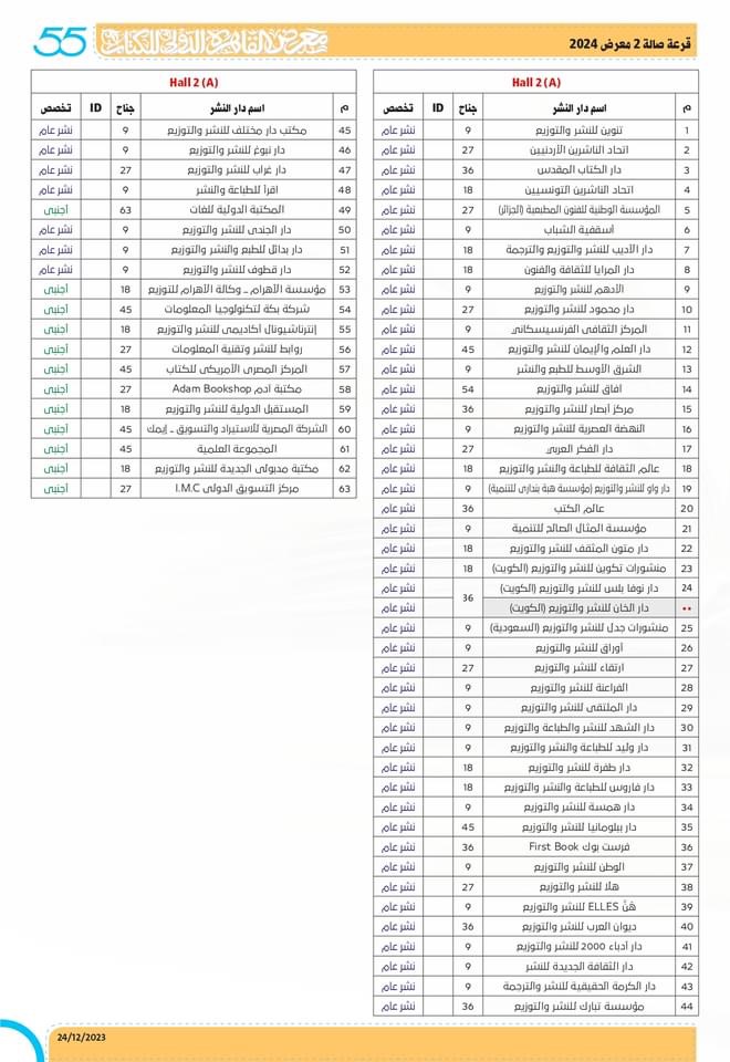 وجاء توزيع أجنحة دور النشر في معرض الكتاب كالتالي: