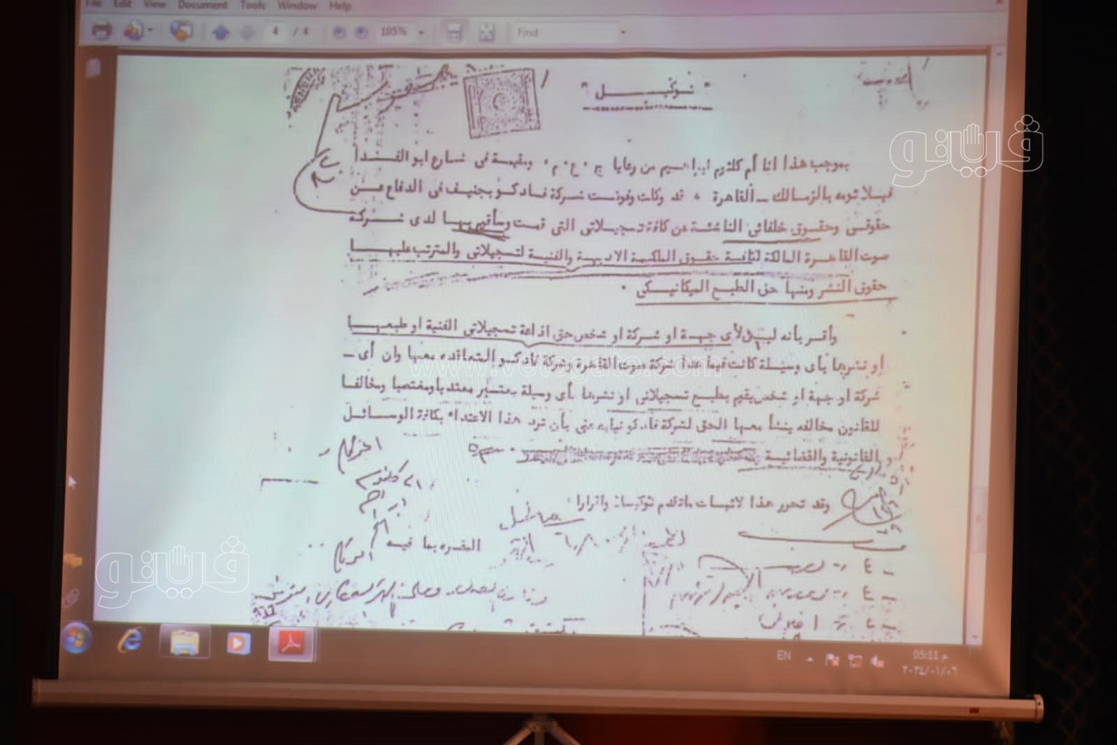 وعرض الدكتور حسام لطفي، خلال مؤتمر جمعية المؤلفين والملحنين، بنقابة الصحفيين، إقرارا وتنازلا بخط اليد للفنانة الراحلة أم كلثوم، لشركة صوت القاهرة عن أخذ كافة الحقوق، موضحا أن هناك بعض الأمور لا يعلم عنها أحد، وأن أم كلثوم لا تملك سوى نسبة من أعمالها تذهب للورثة.