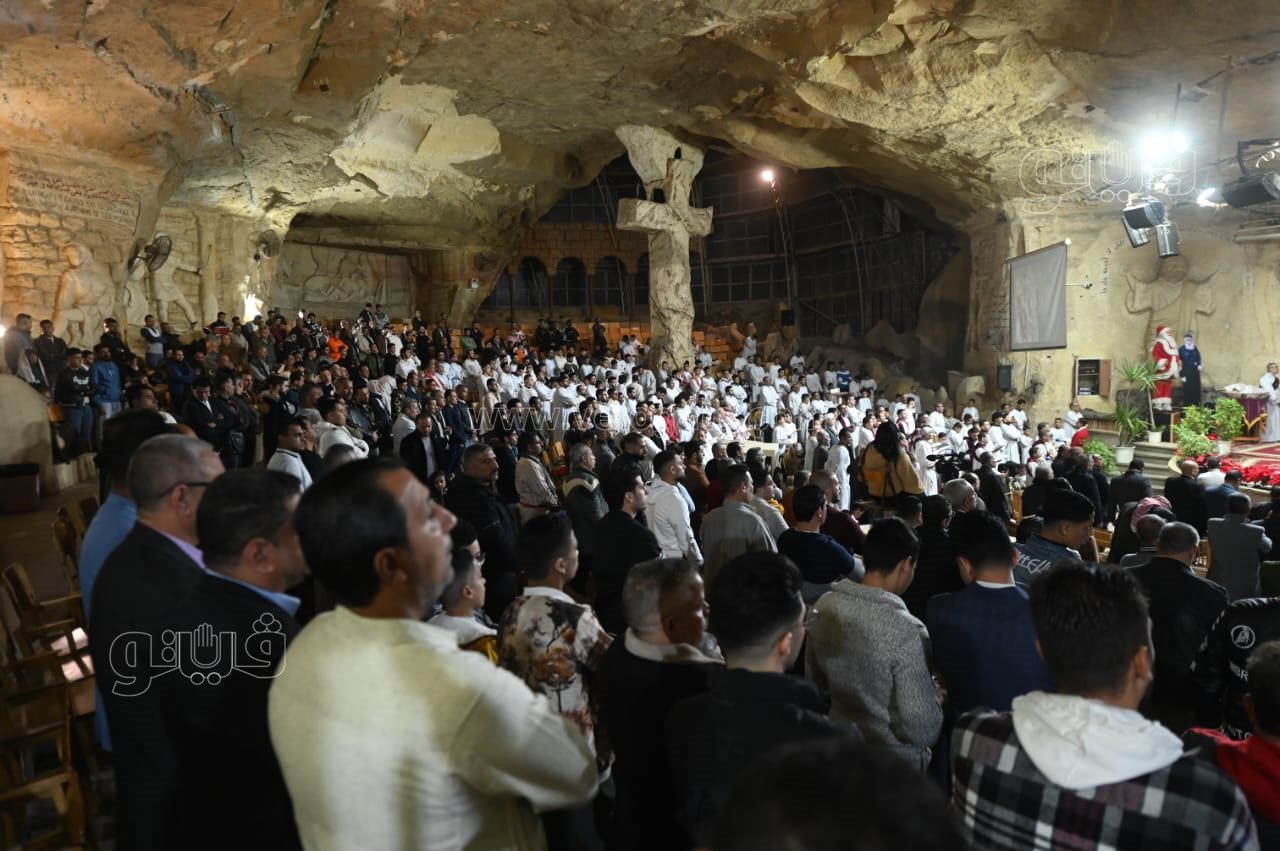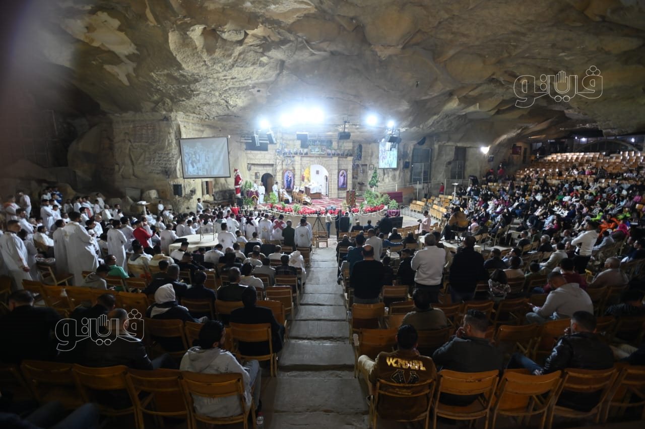 عشرات الأقباط يحضرون الاحتفال بعيد الميلاد في دير سمعان الخراز (صور)