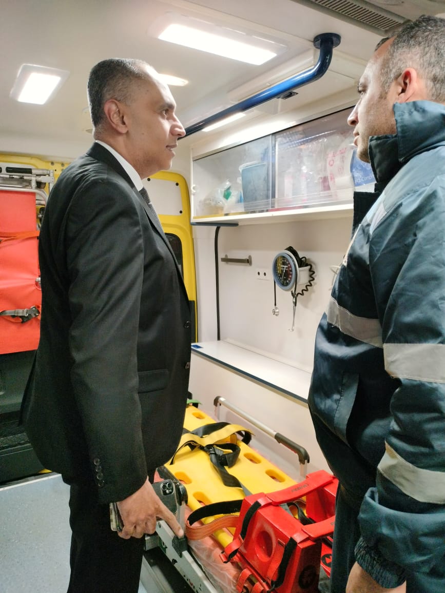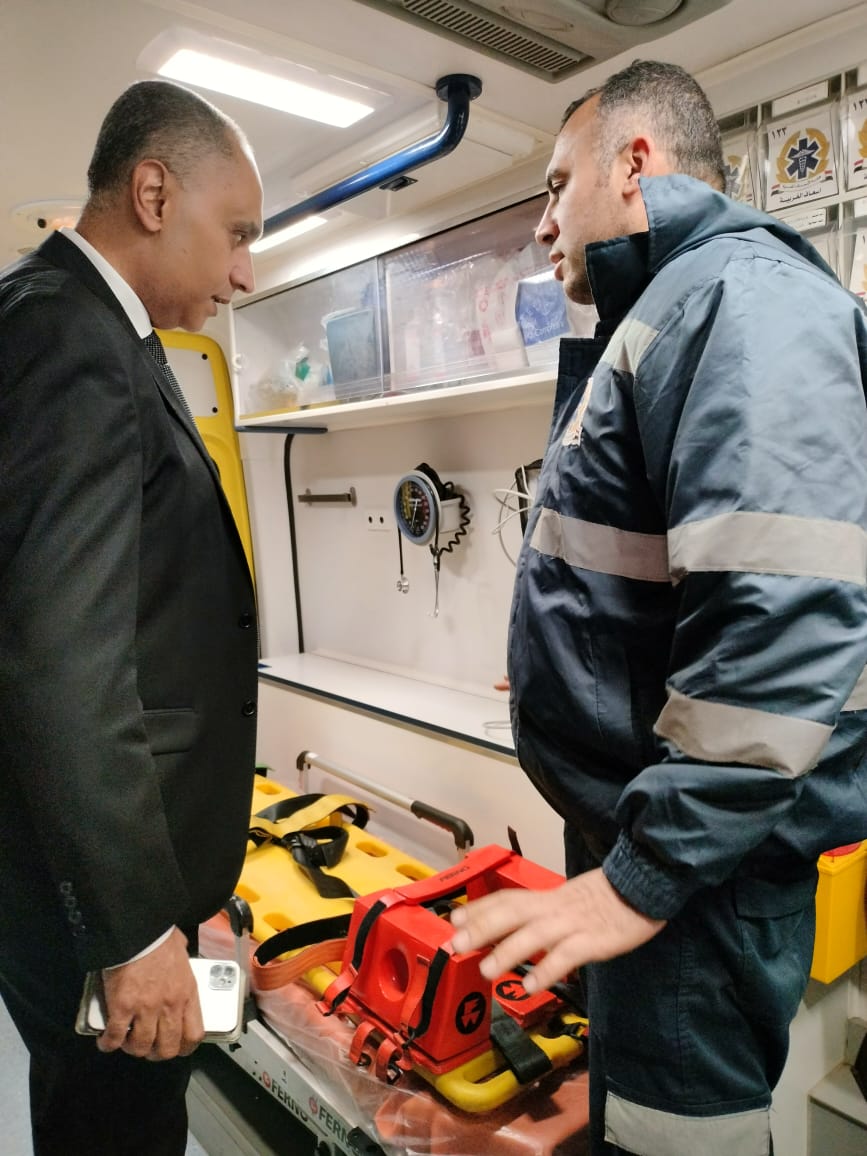 وإخطار إدارة الطب الوقائي بإتخاذ الإجراءات الوقائية اللازمة إستعدادًا لأى حادث طارئ ، والتنسيق مع مدير فرع هيئة الاسعاف بالمحافظة استعدادًا لأي طارئ وتفقد تمركز سيارات الإسعاف خلال أيام عيد الميلاد المجيد