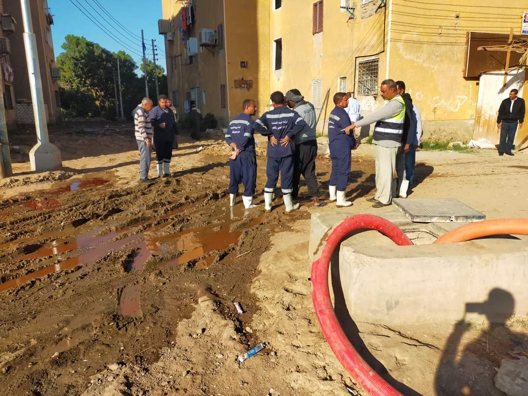 وتم العمل على نزح المياه وتطهير جميع البيارات بالمعدات وحل مشكلة طفح المياه بالشوارع، وتبين أن أحد المواطنين بالمنطقة يقوم بتكسير الغرف والتعدى على الشبكة الموجودة بمنطقة العمارات ورمى المخلفات ببيارة التجميع مما تسبب فى حدوث كارثة الطفح وغرق الشوارع وتسبب فى عمل ذعر للمواطنين بالعمارات المجاورة بسبب زيادة طفح مياه الصرف.