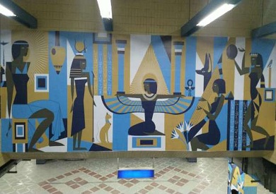 وأكدت في تصريحات: "استعنا في عمل جدارية محطة كلية البنات بالرسومات اللي موجودة في معبد فيلة ومقبرة الملكة نفرتاري ونب آمون بالأقصر، أما الفنان الروسي مخدش زي اللي إحنا خدناه".