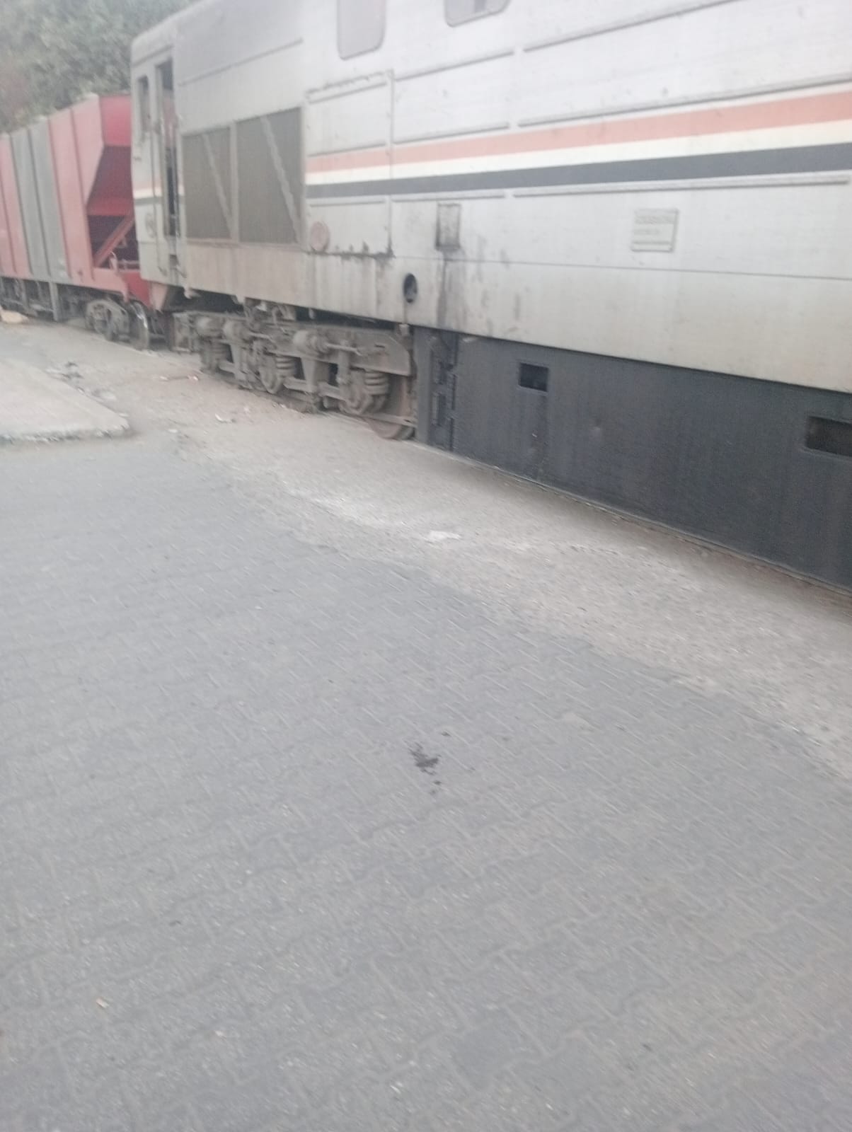 توقف حركة السكة الحديد بعد خروج قطار بضائع عن القضبان في بني سويف (صور)