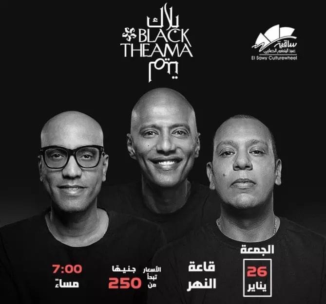 تحيي فرقة بلاك تيما حفلا غنائيا مميزا على مسرح قاعة النهر بساقية الصاوي بالزمالك، وذلك في تمام السابعة من مساء يوم الجمعة الموافق 26 يناير الجاري، ضمن برنامج حفلات الساقية للشهر الجاري.