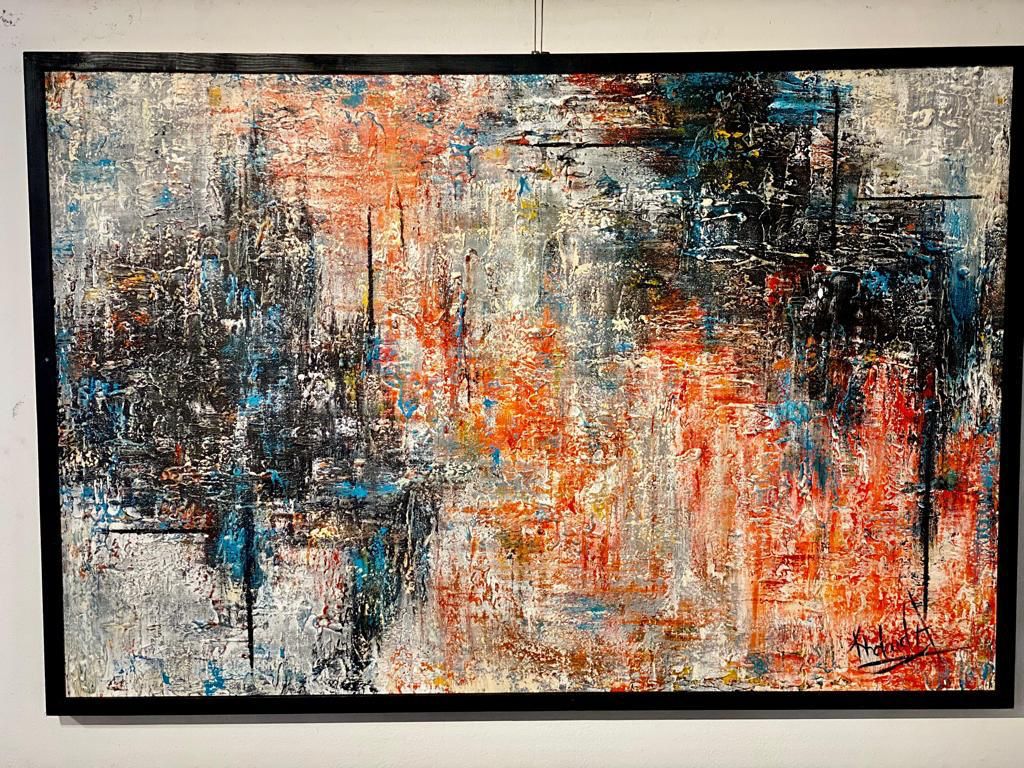 و يضم المعرض 105 لوحة تلخص فترة زمنية واحداث واقعية عاشتها الفنانة حيث استثمرت الفن كوسيلة للعلاج واللتعبير عن قوة المرأة مستخدمة أسلوب التجريد الذى يعتمد على مساحات لونية تجسيد المشاعر الانسانية المختلفة بخامات متنوعة منها الاكريلك، الخشب، الرايزن وغيرها.