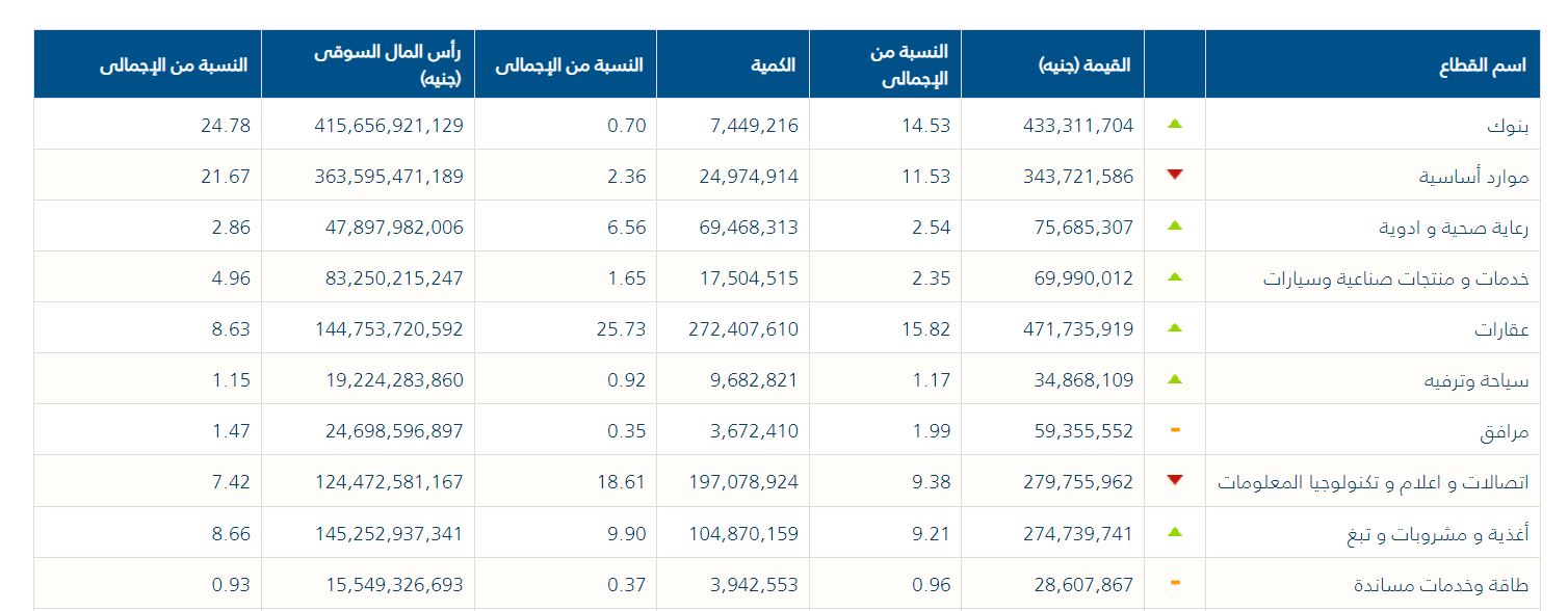 - قطاع البنوك : بقيمة 433.311.704 جنيهات.