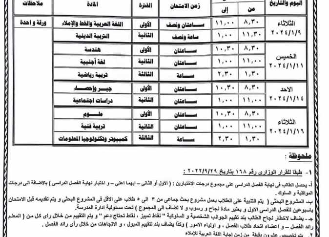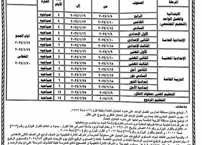 وتعقد امتحانات الفصل الدراسي الأول 2024، وفقًا للجداول المعلنة في كل مديرية من مديريات التربية والتعليم بكل محافظة من محافظات الجمهورية.