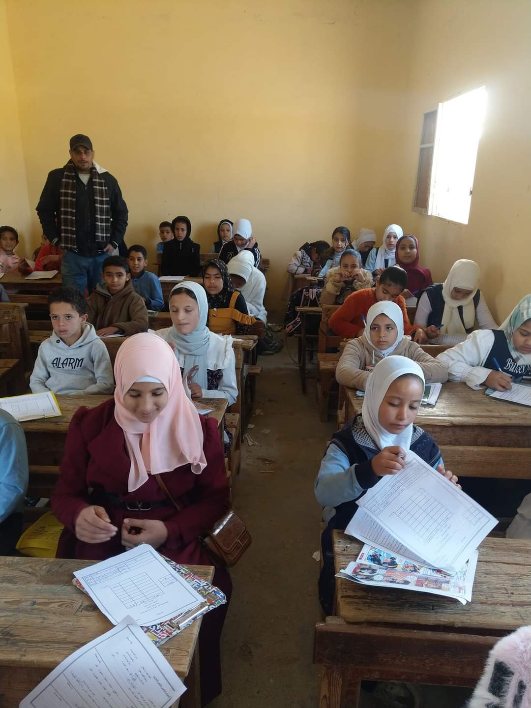 أدى طلاب الفترة الصباحية امتحان مادتي اللغة العربية والتربية الدينية وجاري أداء تلاميذ الفترة المسائية للامتحانات في نفس المواد.