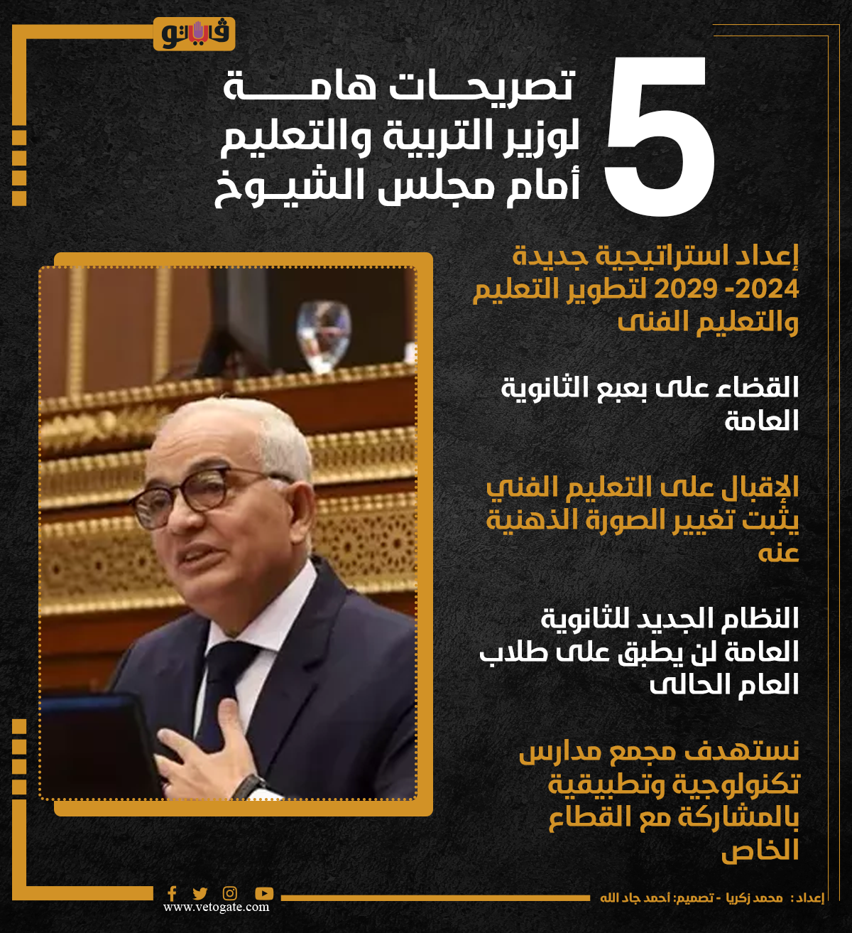 وزير التعليم: تطوير نظام الثانوية العامة وحوار مجتمعي حول تطوير المناهج