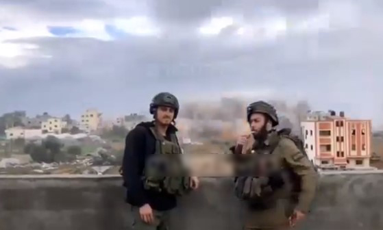 ويظهر مقطع الفيديو الصادم، الذي تم تداوله بشكل واسع، جنديين من جنود الاحتلال وهم يقفون على أحد مباني حي الشجاعية، ويقومون بانتظار إشارة تفجير مربع سكني هائل في حي الشجاعية، بدون اكتراث وبدم بارد، الأمر الذي أثار غضب العديد من النشطاء، بسبب أعمال جنود الاحتلال التي وُصفت بـ الإجرامية.