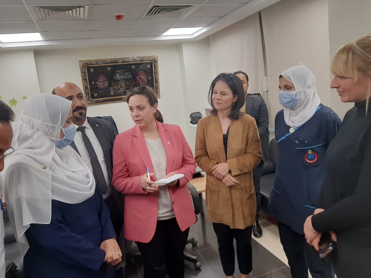 وزيرة الخارجية الألمانية تزور الجرحى الفلسطينيين في مستشفى العريش العام