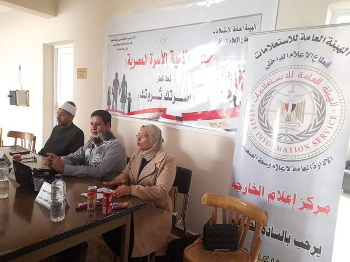 ومن جانبها قالت أزهار عبد العزيز مدير مركز إعلام الخارجة، أن الندوة تأتي فى إطار الحملة الإعلامية لتنمية الأسرة المصرية تحت شعار (أسرتك ثروتك) بتوجيهات الدكتور أحمد يحيى رئيس قطاع الإعلام الداخلى ورعاية الدكتور ضياء رشوان رئيس الهيئة العامة للاستعلامات.