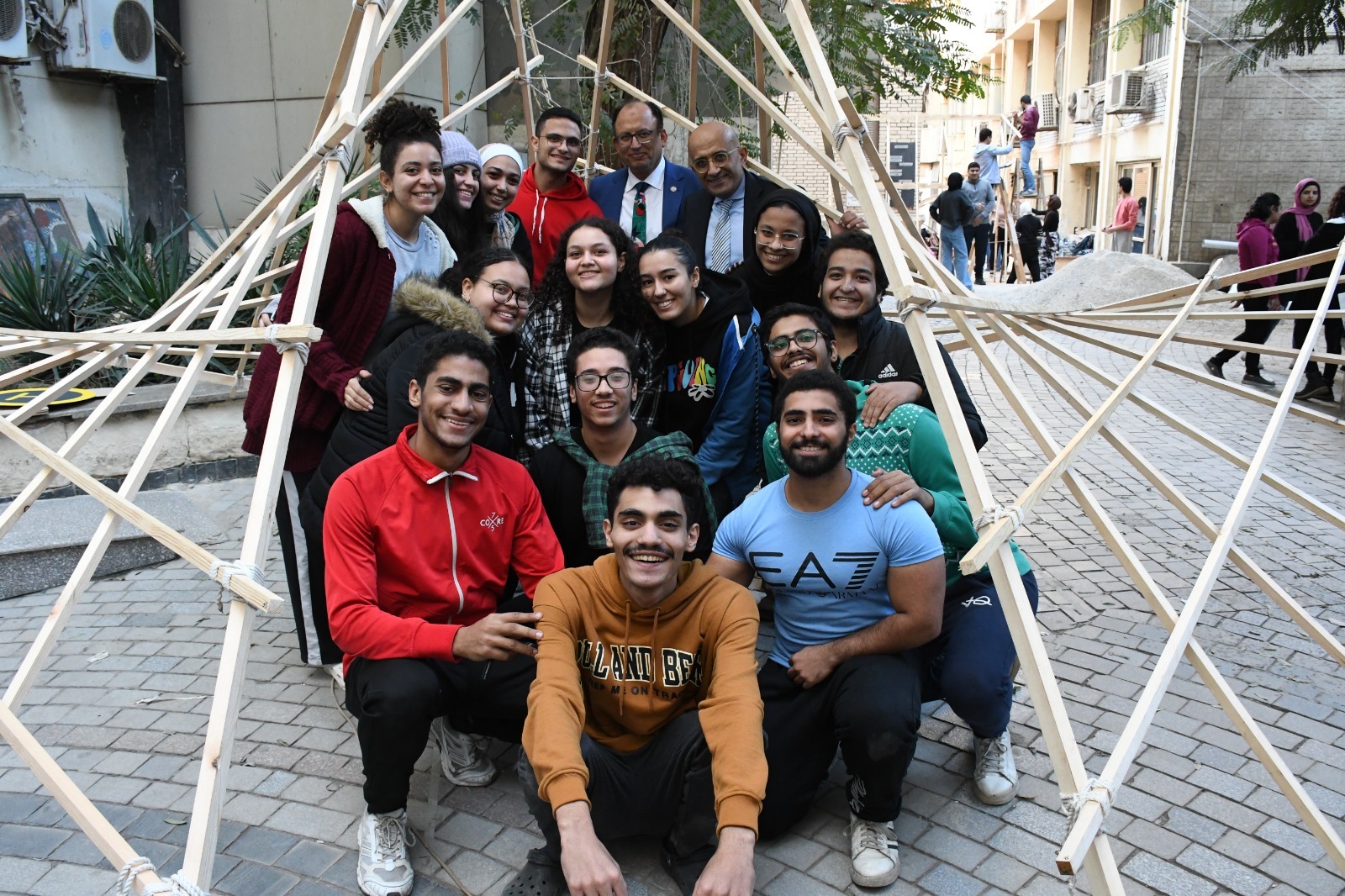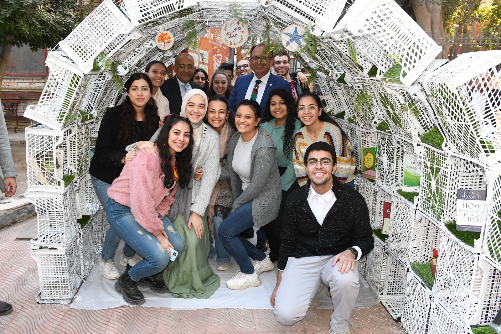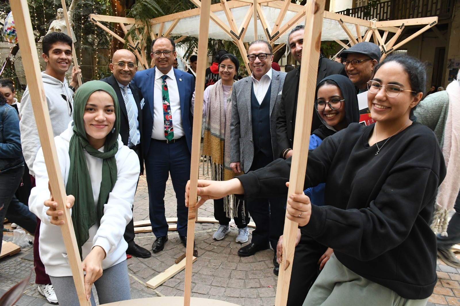 وقد تم تنظيم المعرض برعاية ودعم وحضور من الدكتور السيد قنديل رئيس الجامعة، وإشراف الدكتور عمرو سامي عميد الكلية، الدكتورة أمنية يحيى وكيل الكلية لشئون خدمة المجتمع وتنمية البيئة، والدكتور ياسر السيد أستاذ مادة نظريات العمارة بقسم العمارة.