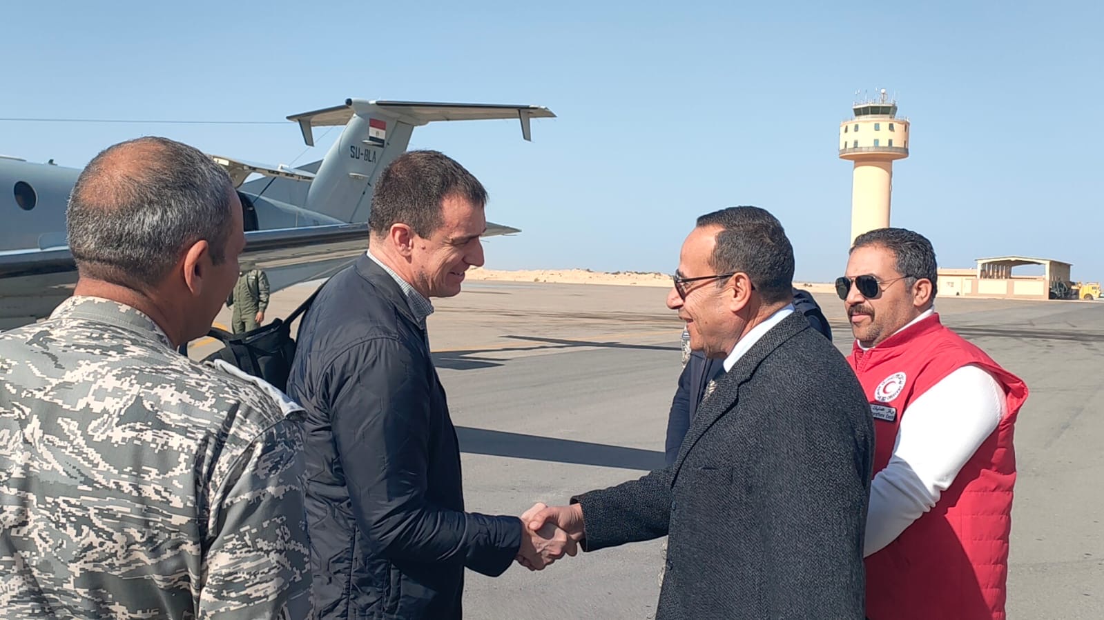 استقبل اللواء دكتور محمد عبد الفضيل شوشة محافظ شمال سيناء، جيل ميشو، وكيل الأمين العام للأمم المتحدة لشؤون السلامة والامن والوفد المرافق له خلال وصوله إلى مطار العريش الدولي على متن طائره خاصة، في حضور الدكتور طارق شوكة، وكيل وزارة الصحة بالمحافظة، لطفي غيث مدير العمليات بالهلال الأحمر المصري.