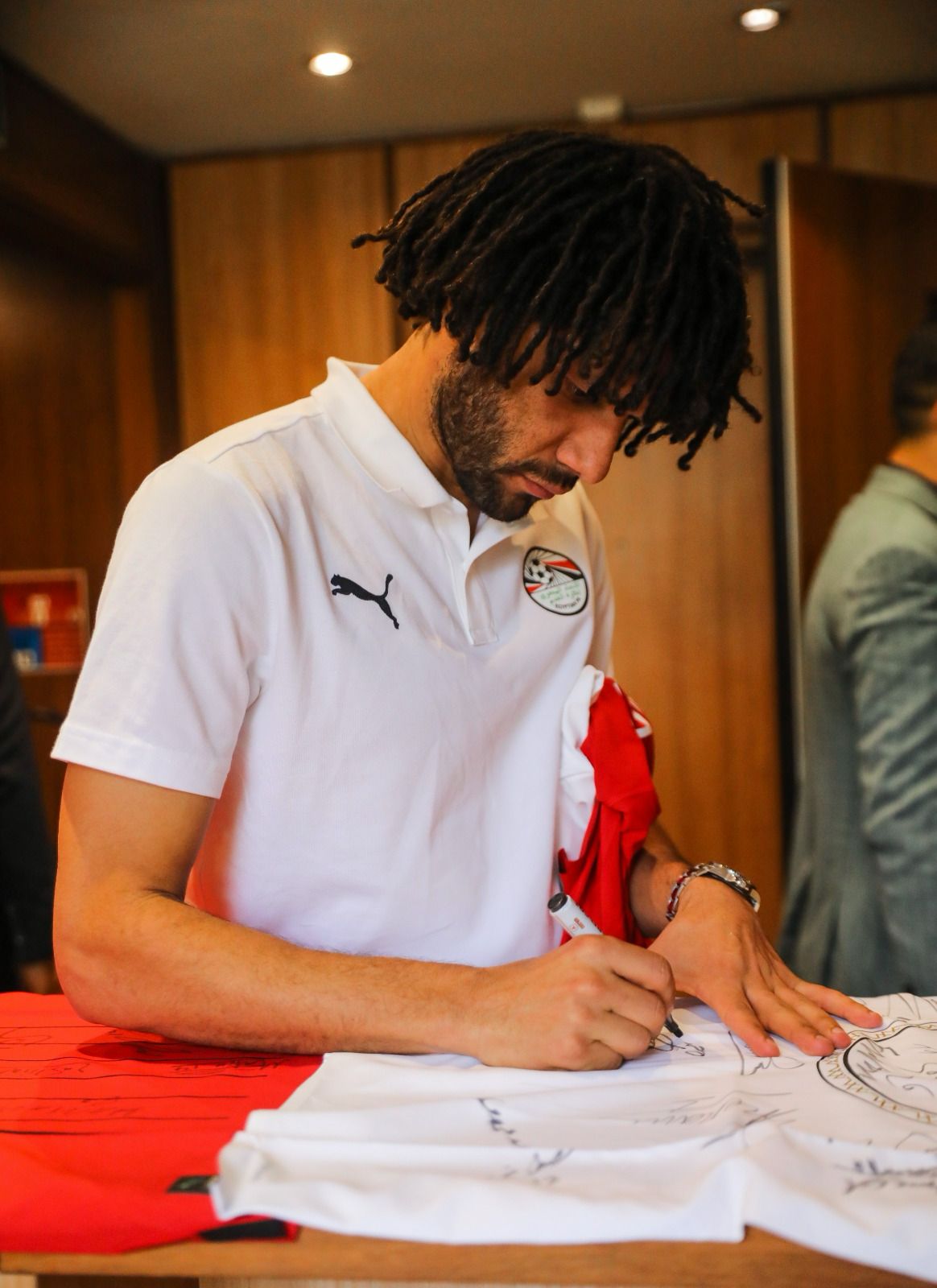 وشهد الاجتماع عرض قمصان وألوان الزي الخاص بمنتخب مصر في البطولة سواء الأساسي أو الاحتياطي.