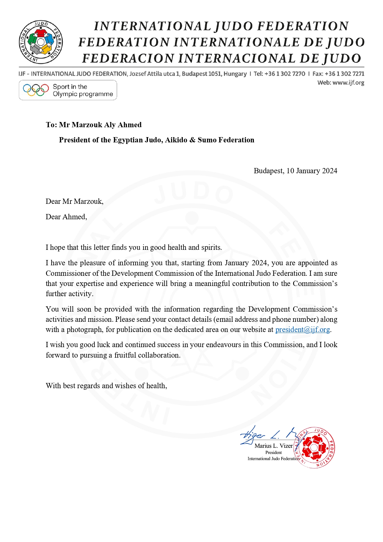 مفوض لجنة التطوير بالاتحاد الدولي للجودو.