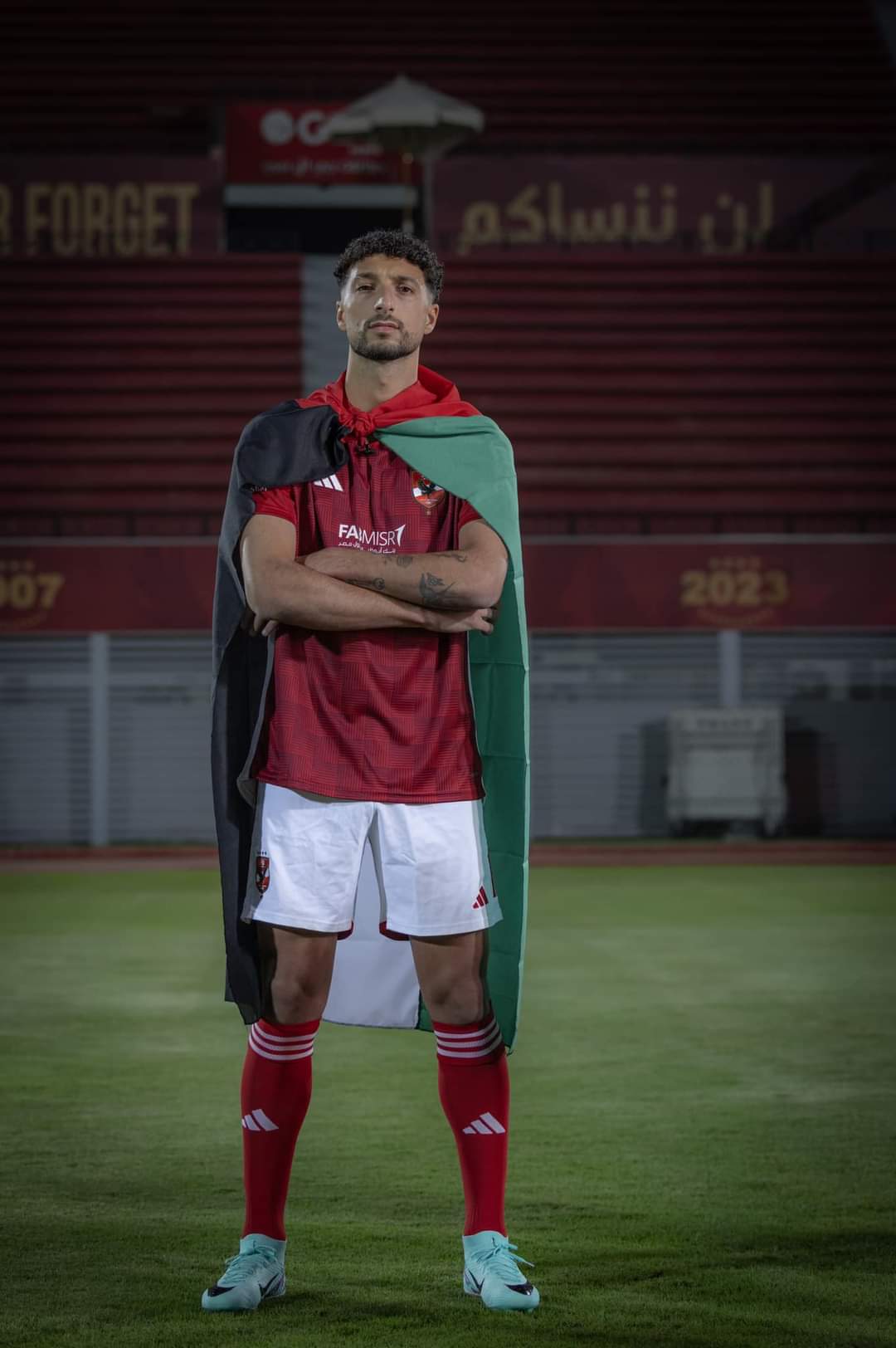 ونشرت الصفحة الرسمية للنادي الأهلي على فيس بوك صورًا للاعب الفلسطيني وسام أبو علي مرتديا علم فلسطين داخل أرضية ملعب مختار التتش.