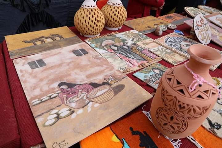 كما تفقدا عددًا من المنشآت الرياضية، ومعرض المنتجات التراثية واليدوية لمراكز الشباب بالمحافظة، الذي شمل منتجات: (الكليم والسجاد، والمشغولات اليدوية، والفخار والخزف، والرسم بالرمال، ومنسوجات الصوف).