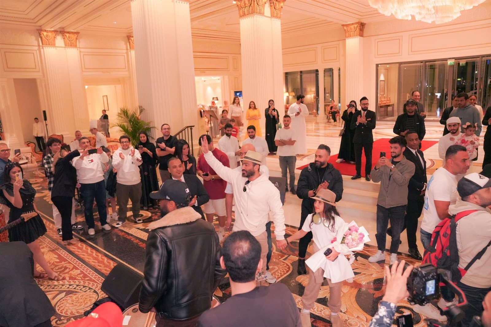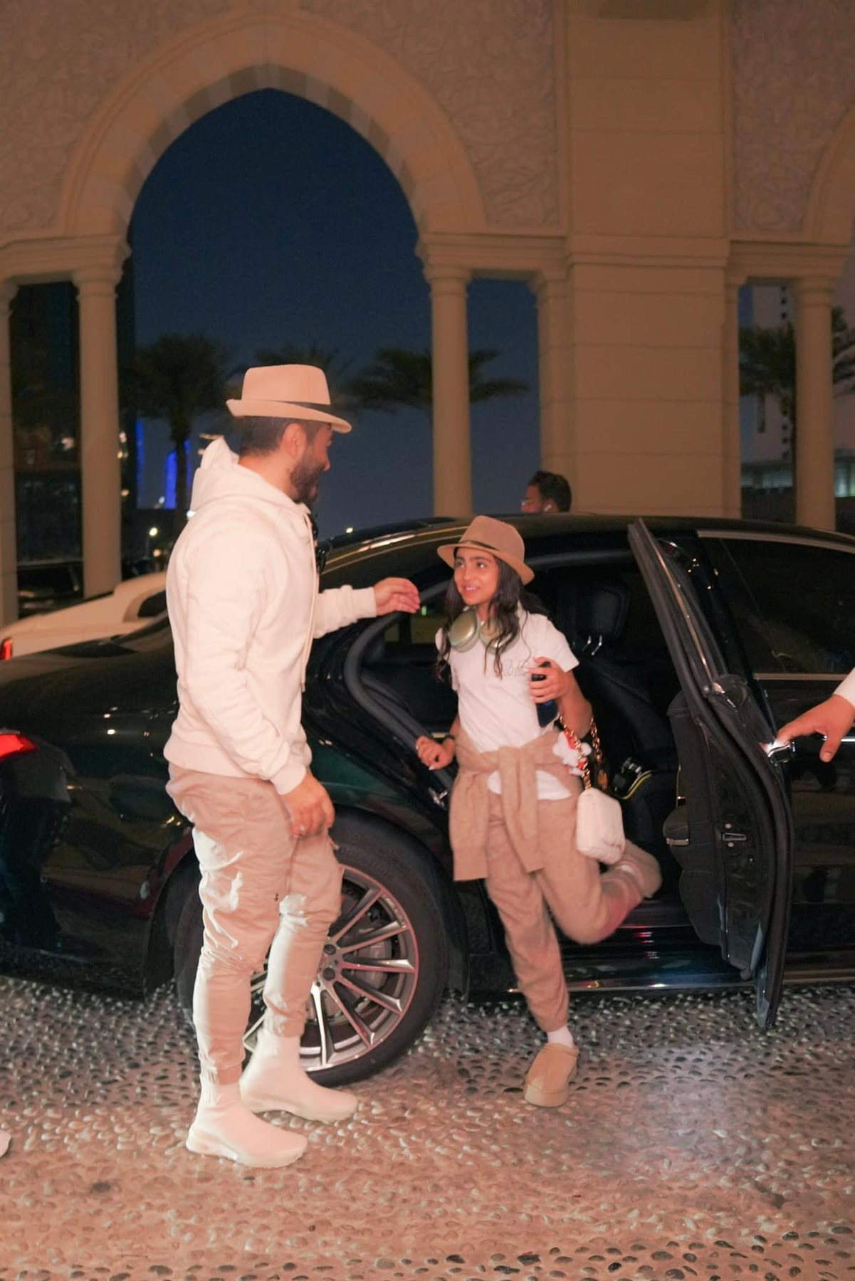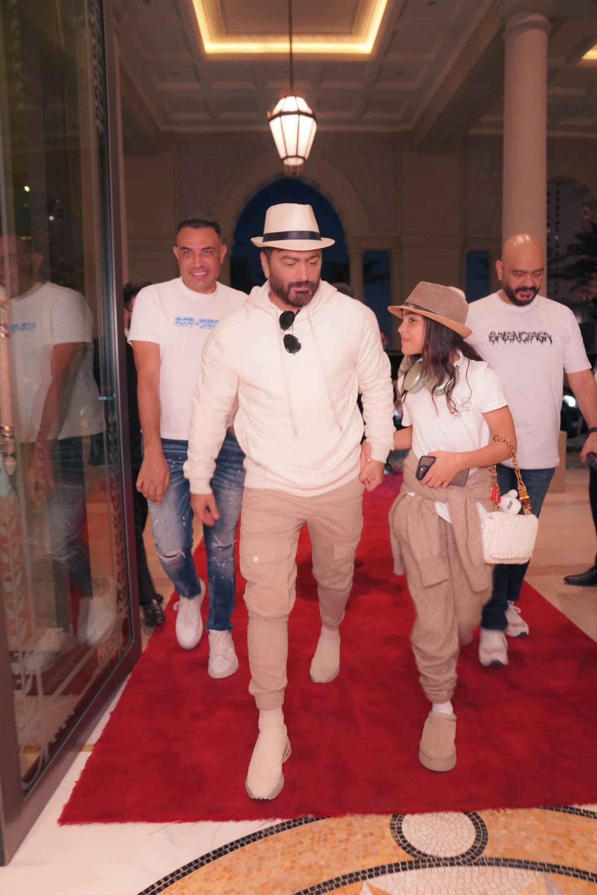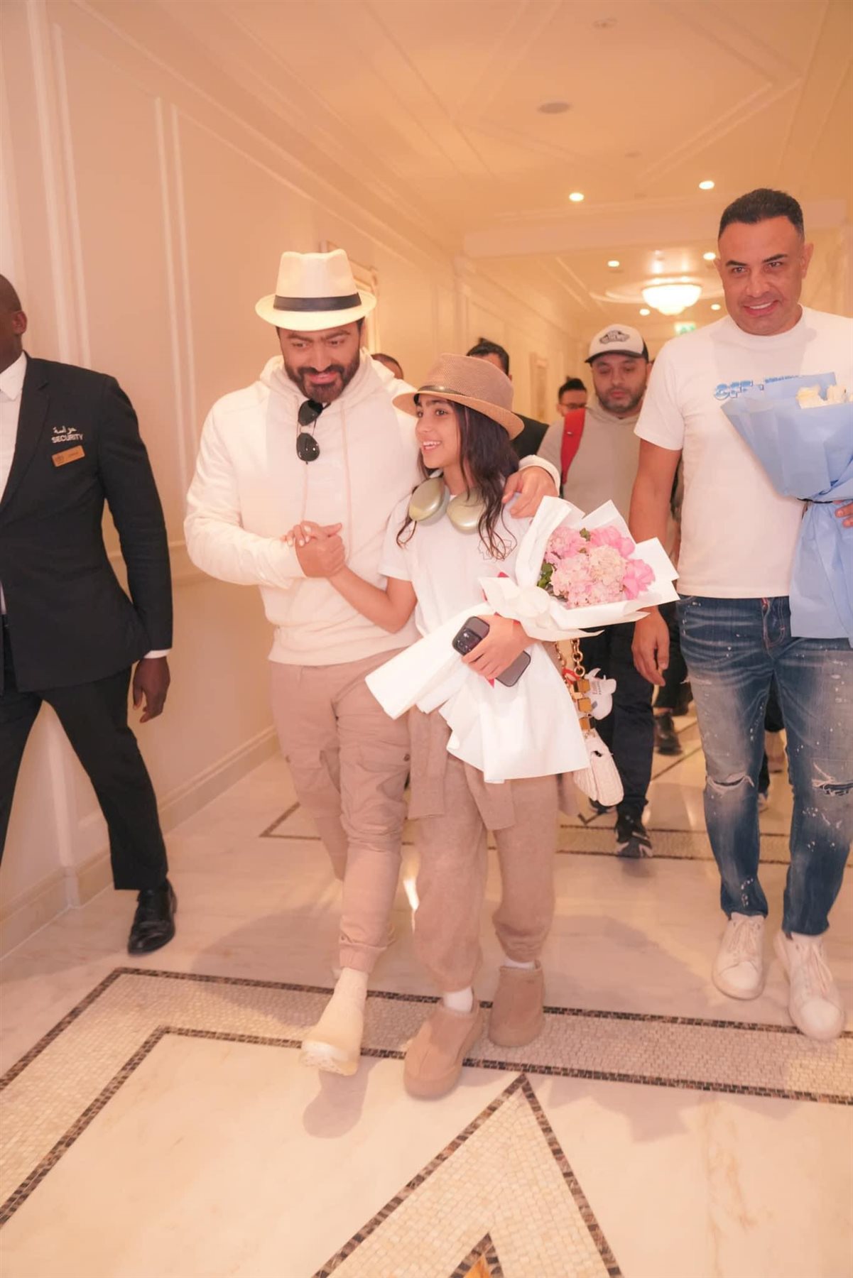 استقبال خاص لـ تامر حسني بعد وصوله إلي دبي برفقة ابنته الكبري (صور)