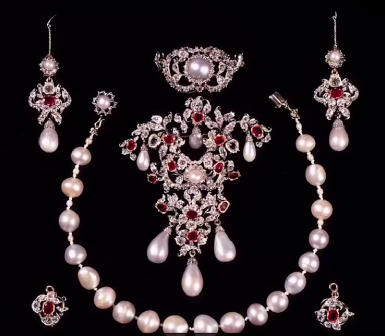ويضم عقدًا كبيرًا من اللؤلؤ وأقراطًا من اللؤلؤ والياقوت والألماس، وبروشًا كبيرًا من اللؤلؤ والياقوت والألماس يمكن تفكيكه وارتداؤه بطرق مختلفة، وكانت الملكة مارجريت ترتدي البروش الملحق بالقلادة في بعض الأحيان.
