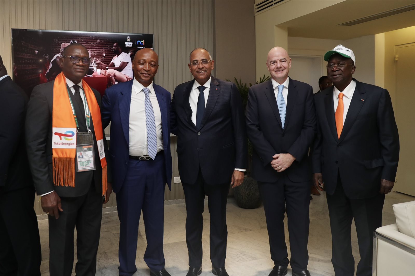 وتواجد في افتتاح كأس أمم إفريقيا كلا من جياني إنفانتينو رئيس الاتحاد الدولي لكرة القدم "فيفا"، وباتريس موتسيبي رئيس الاتحاد الأفريقي لكرة القدم، "كاف"، وديدييه دروجبا مهاجم كوت ديفوار وتشيلسي الإنجليزي السابق، والحسن واتارا رئيس دولة كوت ديفوار.