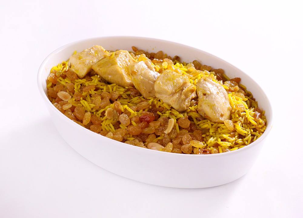 عندما يتشرب الرز كل الماء، نضيف على السطح الزبيب والجزر الذي تم تشويحه؛ حتى يأخذ البخار وطعم الرز، ثم ننتشله، لوضعه عند التقديم.