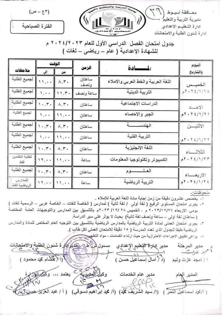 الخميس، انطلاق امتحانات الشهادة الإعدادية 2024 بمحافظة أسيوط