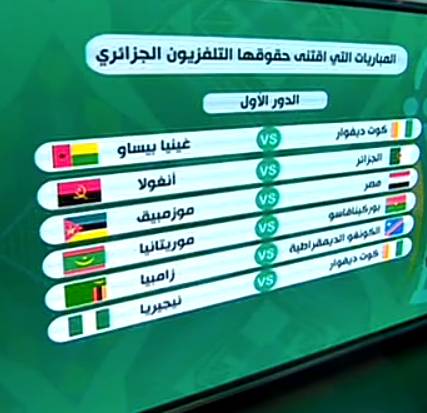 وكانت قناة الجزائر الأولي نقلت مساء أمس افتتاح كأس الأمم الأفريقية بكوت ديفوار والمباراة الافتتاحية بين كوت ديفوار ضد غييا بيساو 2-0.