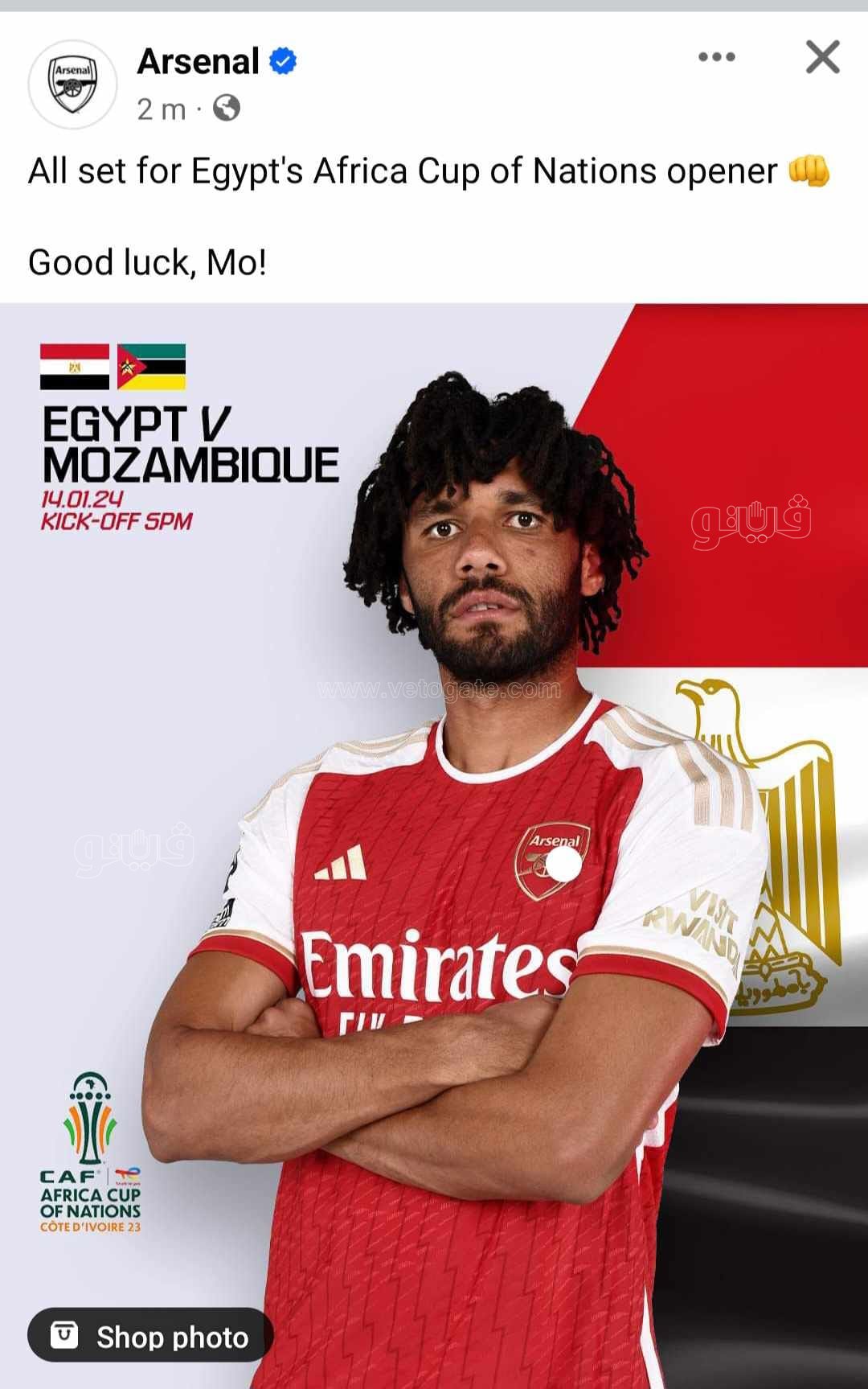 أمم أفريقيا، رسالة خاصة من أرسنال لـ النني قبل مباراة مصر وموزمبيق