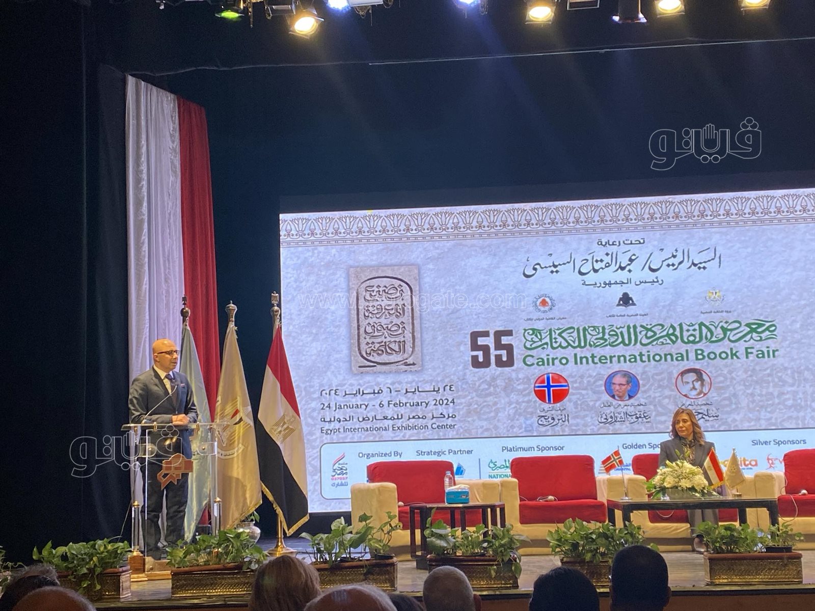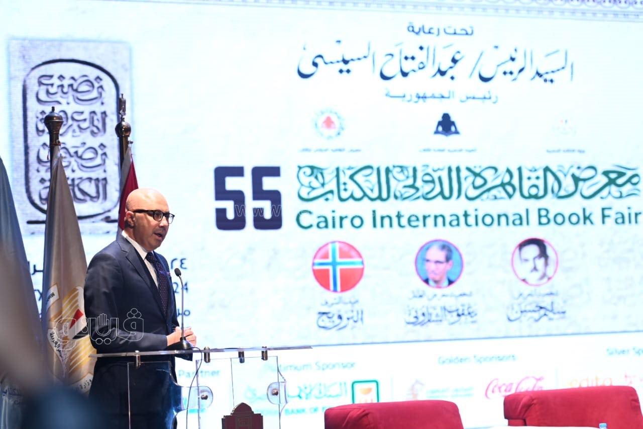 جاء ذلك خلال المؤتمر الصحفي للكشف عن تفاصيل معرض القاهرة للكتاب بدورته الـ 55 والذي يقام بالمسرح الصغير بدار الأوبرا المصرية، بحضور الدكتورة نيفين الكيلاني وزيرة الثقافة، والدكتور أحمد بهي الدين رئيس الهيئة المصرية العامة للكتاب، والسفيرة هيلدا كليمتسدال سفيرة النرويج في القاهرة، ومحمد رشاد رئيس اتحاد الناشرين العرب، وسعيد عبده رئيس اتحاد الناشرين المصريين.