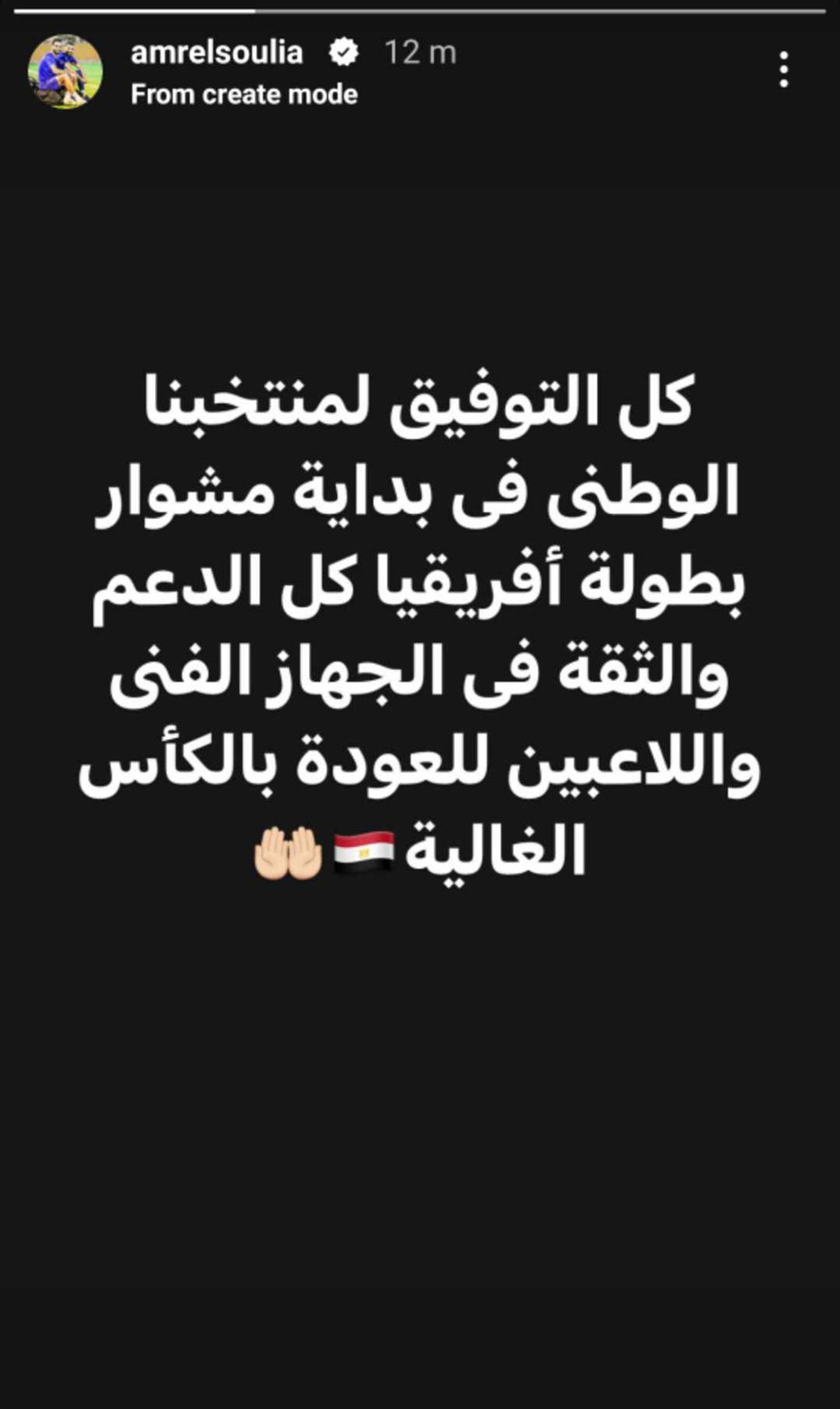 منتخب مصر، وجه عمرو السولية لاعب الأهلي رسالة إلى لاعبي المنتخب الوطني قبل مواجهة موزمبيق اليوم في مستهل مشوار الفريق في بطولة أمم إفريقيا.