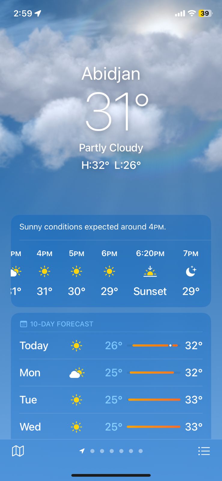 وتصل درجة الحرارة في العاصمة الإيفوارية أبيدجان إلى 31 وذلك قبل مواجهة مصر وموزمبيق، المباراة الأولى في مشوار الفراعنة في أمم إفريقيا.
