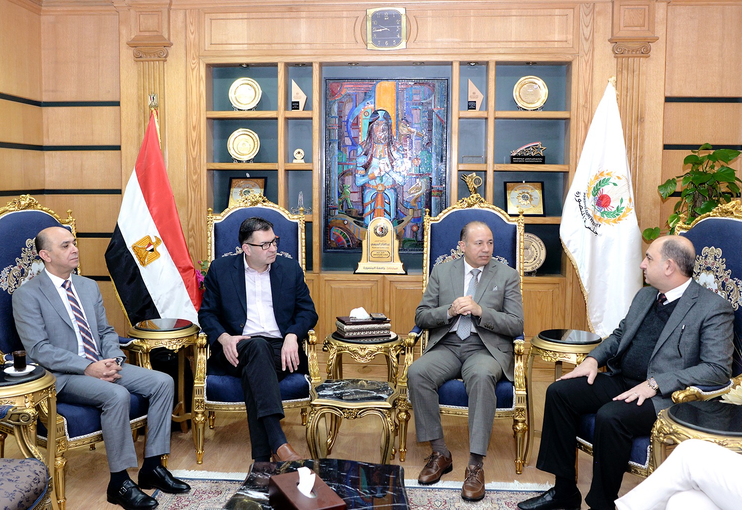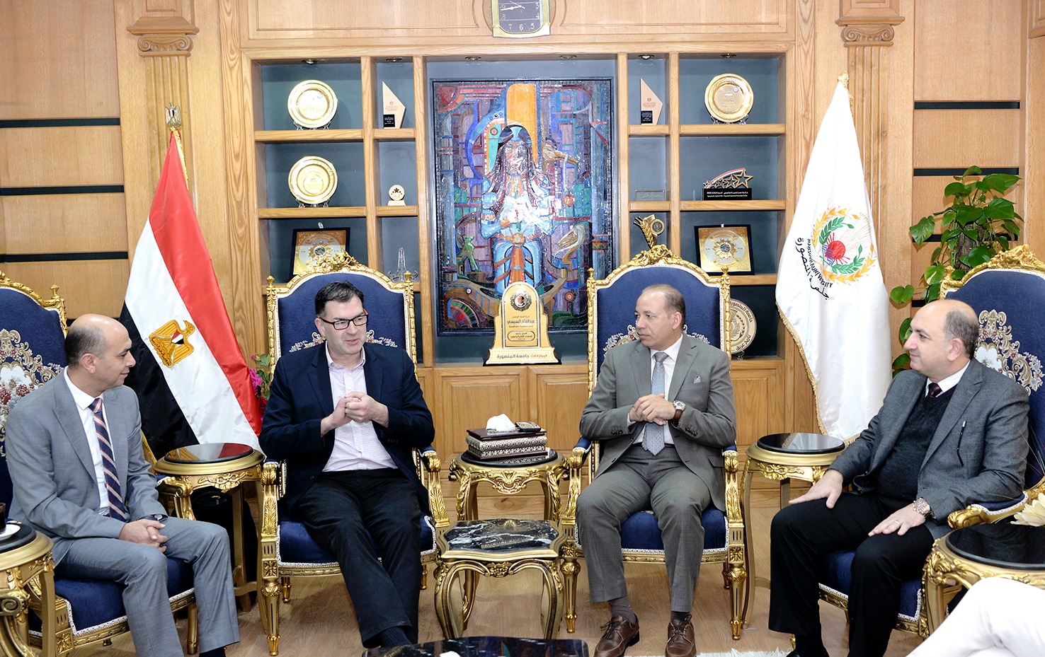 رئيس جامعة المنصورة يستقبل وفد مانشستر لطب الأسنان