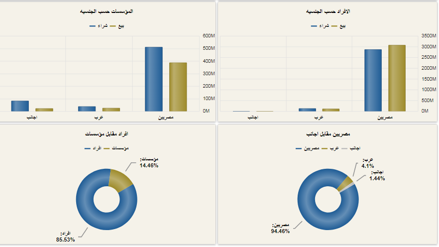 المتداولون الأفراد بالبورصة المصرية يستحوذون على 85.53% من حركة التعاملات