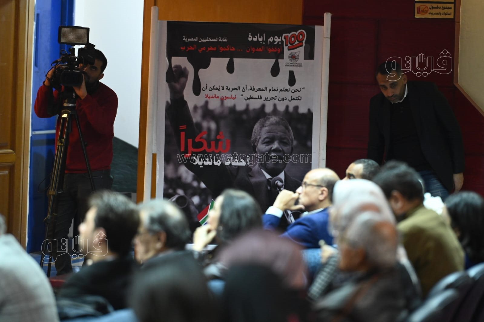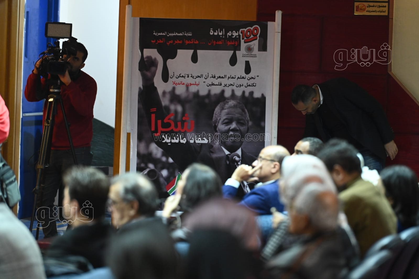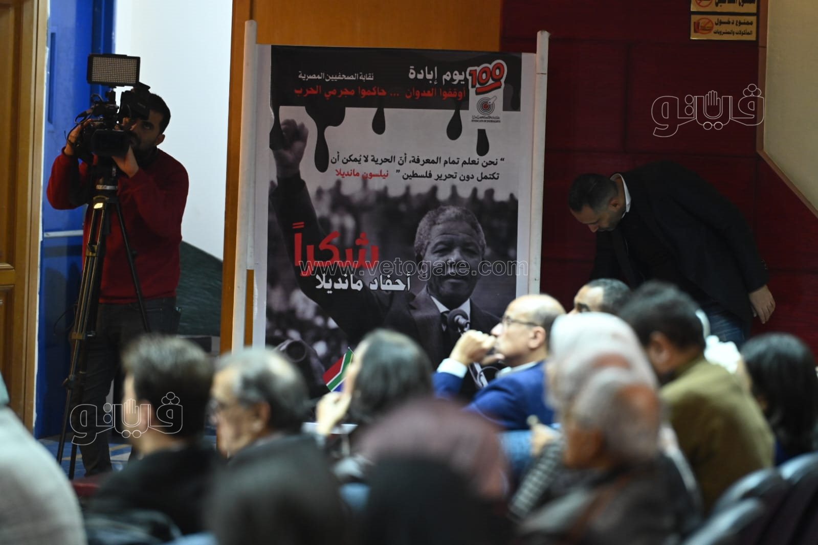 وبدأت منذ قليل فعاليات اليوم التضامني مع الشعب الفلسطينى فى ذكرى مرور 100 يوم على العدوان الصهيونى على غزة تحت عنوان "100 يوم إبادة.. أوقفوا العدوان.. حاكموا مجرمى الحرب".