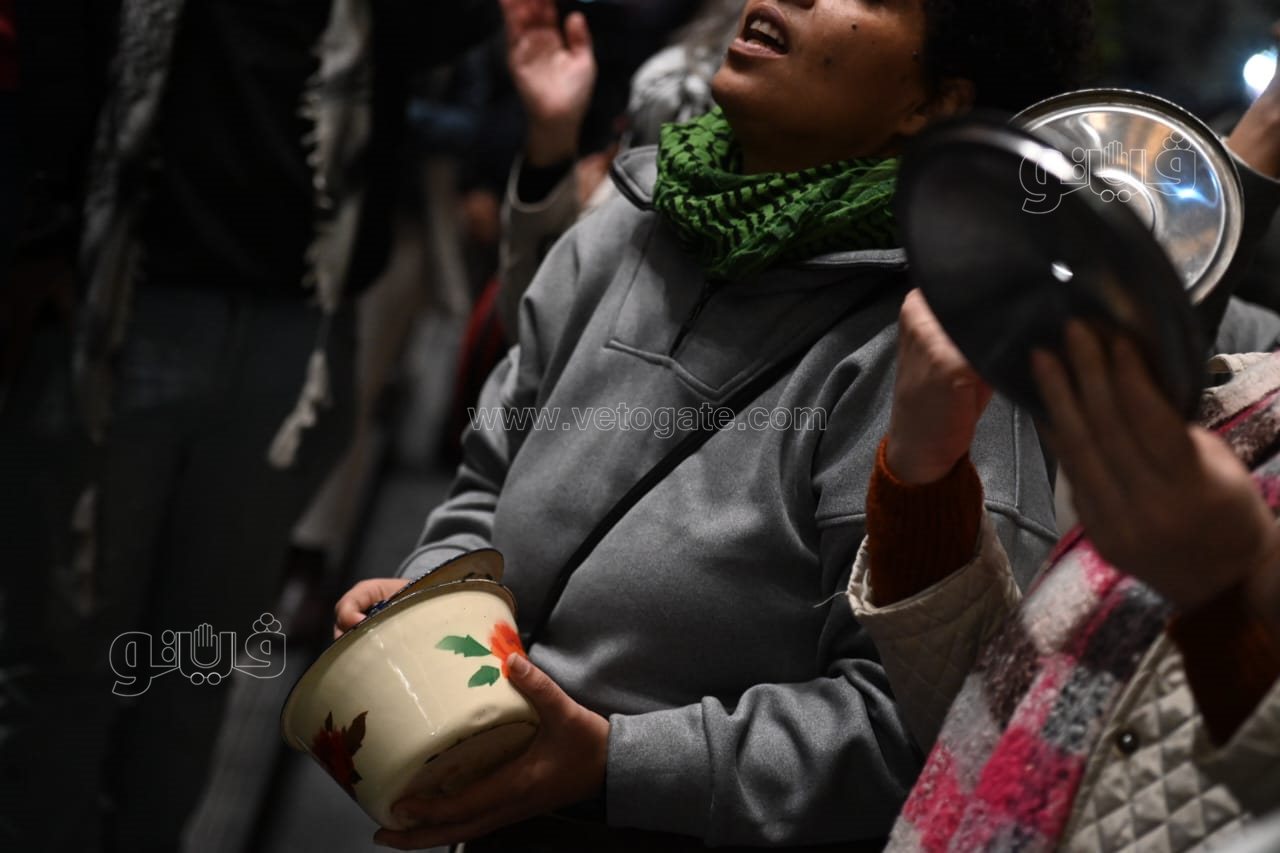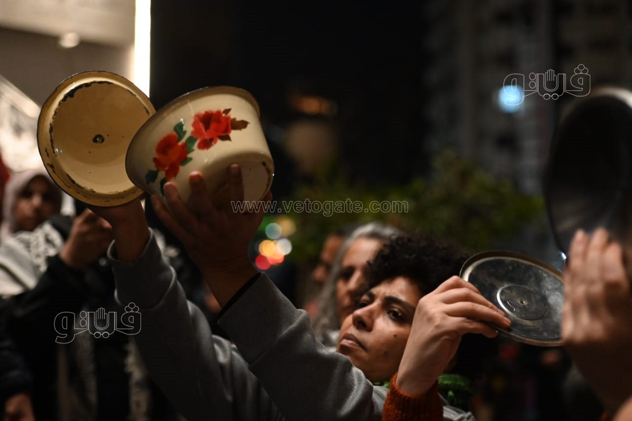 حمل عدد من الصحفيين بعض أواني الطعام "الحلل" على سلم نقابة الصحفيين خلال وقفة احتجاجية نظمتها النقابة، تضامنا مع أهالي غزة المحاصرين من الكيان الصهيوني بدون أدنى مقومات الحياة في انتهاك لكل الأعراف الإنسانية والقانون الدولي.
