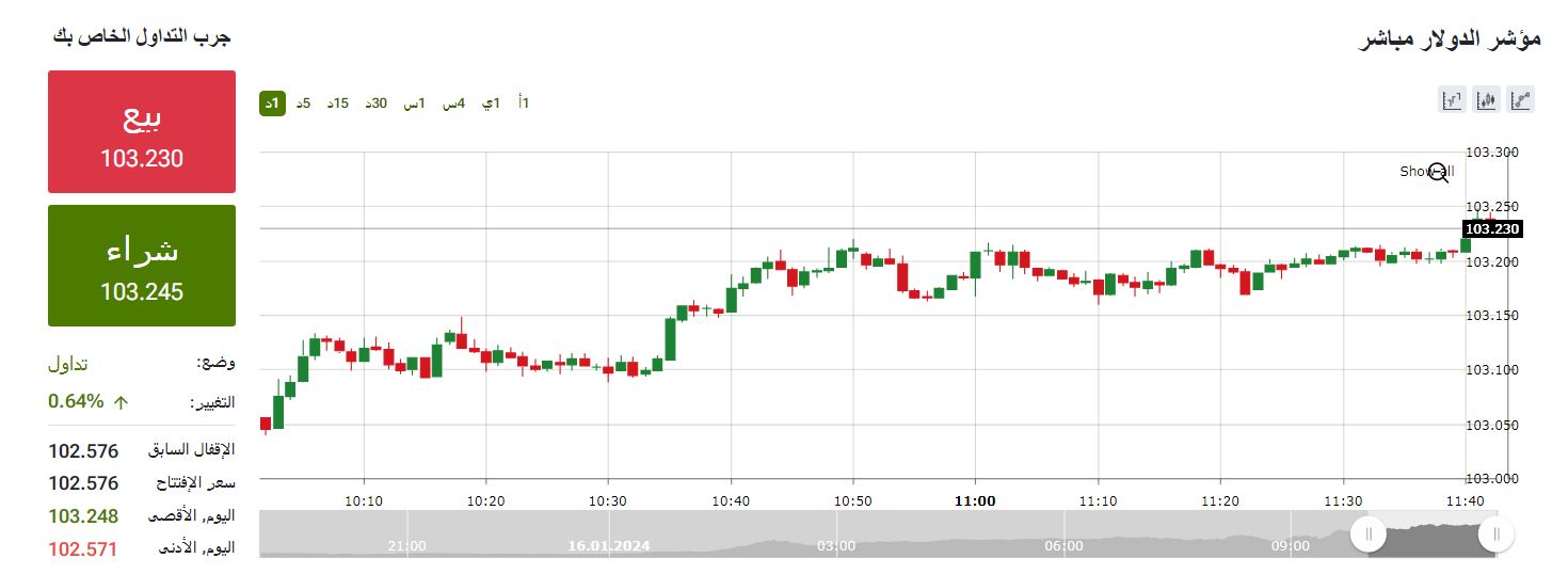 ماذا يحدث فى مؤشر الدولار الأمريكي، ارتفاع قوى بتداولات اليوم الثلاثاء 16-1-2024