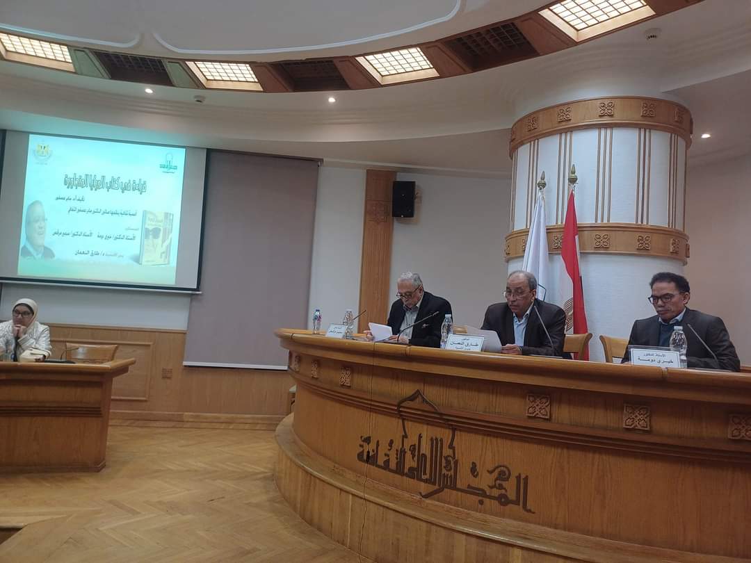 وقدم الدكتور خيري دومة قراءة حول كتاب "المرايا المتجاورة" للدكتور جابر عصفور، موضحًا أن ذلك الكتاب كان مرحلة مبكرة في حياة جابر عصفور، تجاوزها عصفور في حياته بكثير، ولكنها في حينها كانت بؤرة تفكير شغلته لسنوات، ومؤكدًا أن من الصعب أن نفهم قيمة هذا الكتاب ما لك نضعه في الإطار النقدي والسياسي والثقافي الذي صدر فيه، إذ ظهر الكتاب للمرة الأولى عام 1983، في العدد الأول من سلسلة الدراسات الأدبية التابعة للهيئة العامة للكتاب. وحكى دومة أن عصفور كتب مقالة حول هذا الكتاب بعد صدوره بـ25 عامًا بمجلة العربي الصغير الكويتية، حول ملابسات تأليفه للكتاب، وكيف شغلته مفردة المرآة التي تكررت كثيرًا في وصف طه حسين، وذكر دومة أن عصفور كان واقعًا تحت تأثير البنيوية عندما اهتم بتأليف الكتاب، موضحًا أن جاذبية البنيوية في العالم العربي اقترنت بأنها تقدم تصورًا متجانسًا مع العلم، في وقت كان الوعي النقدي الجديد بعد 67 شاعرًا خلاله بأنه واقف خلف عالم من الفوضى، فالبنيوية فعل إدراك للظواهر التي تبدو متباينة، مؤكدًا أن عصفور قد ركز بوضوح على صيغة البنيوية التوليدية لاكتشاف الصيغة التكوينية التي ينبني بها فكر طه حسين، ويتعامل مع إنتاجه على أنه وحدة كاملة، إذ تتعدد المرايا وتظل في رأي عصفور على حالة من التجاور والتناقض في آن.