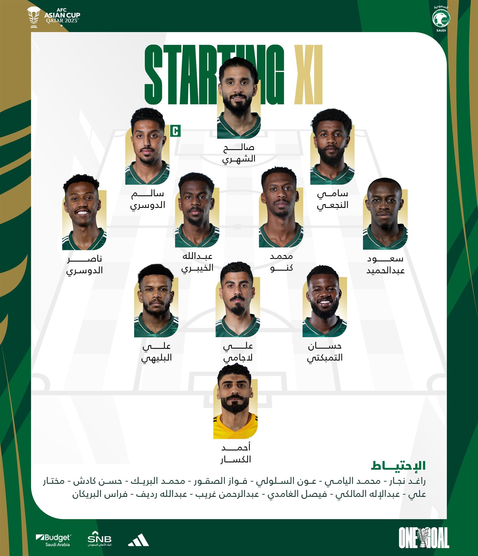 وجاء تشكيل منتخب السعودية ضد عمان في أمم آسيا كالتالي: