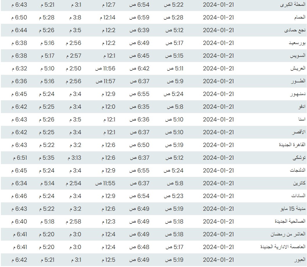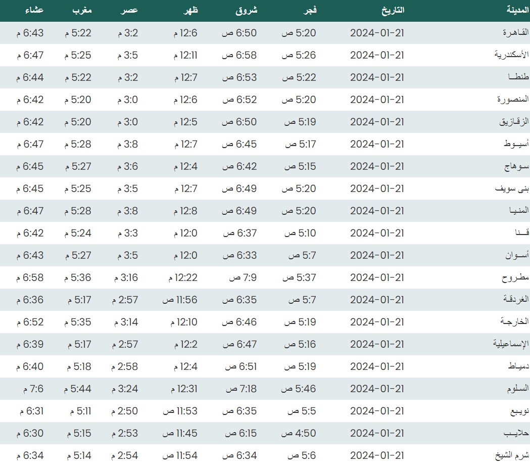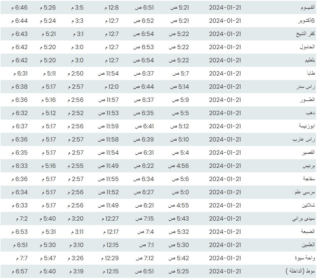 وفيما يلي مواقيت الصلاة، لعدد من مدن ومحافظات الجمهورية من واقع بيانات الهيئة العامة للمساحة