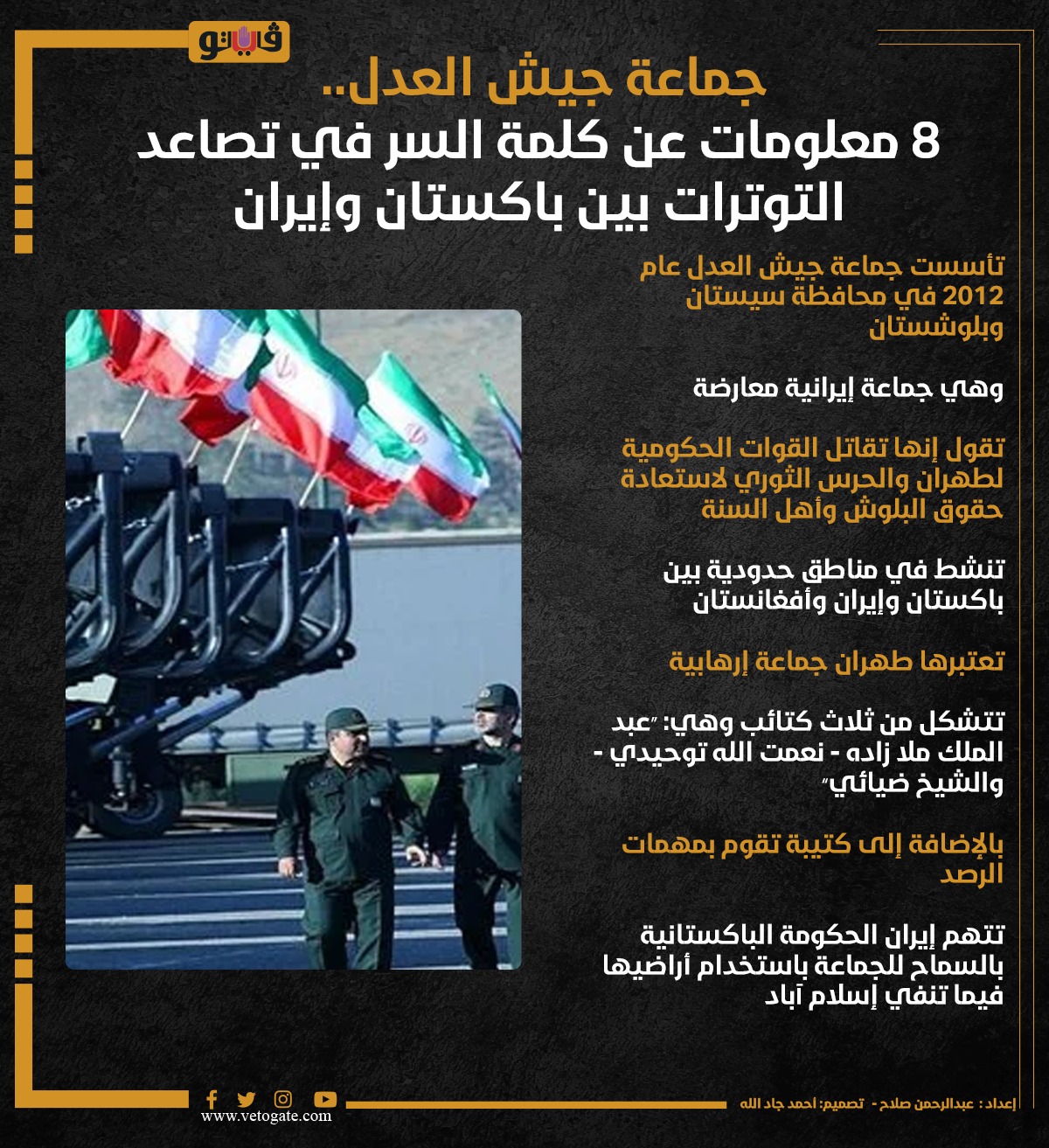 جماعة جيش العدل.. 8 معلومات عن "كلمة السر" في تصاعد التوترات بين باكستان وإيران (إنفوجراف) الخميس 18/يناير/2024 - 05:28 م 1/18/2024 5:28:28 PM التوتر بين إيران وباكستان، فيتو عبدالرحمن صلاح شارك طباعة 18 حجم الخط شارك طباعة باكستان إيران جيش العدل جماعة جيش العدل باكستان وإيران بلوشستان