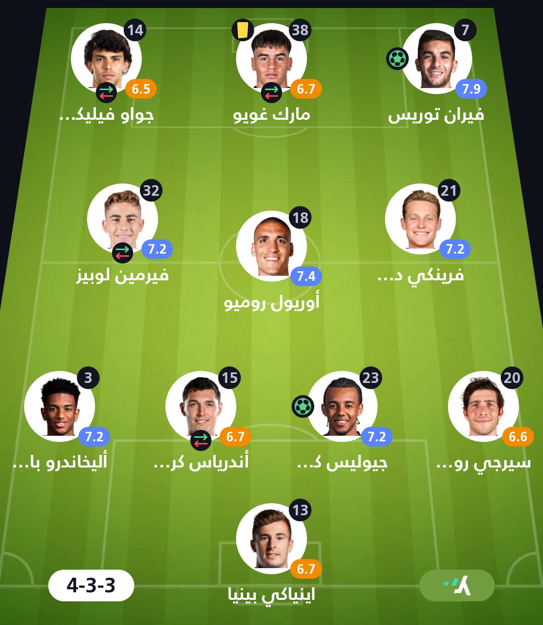 خط الهجوم: فيران توريس، جواو فيليكس، مارك جويو.