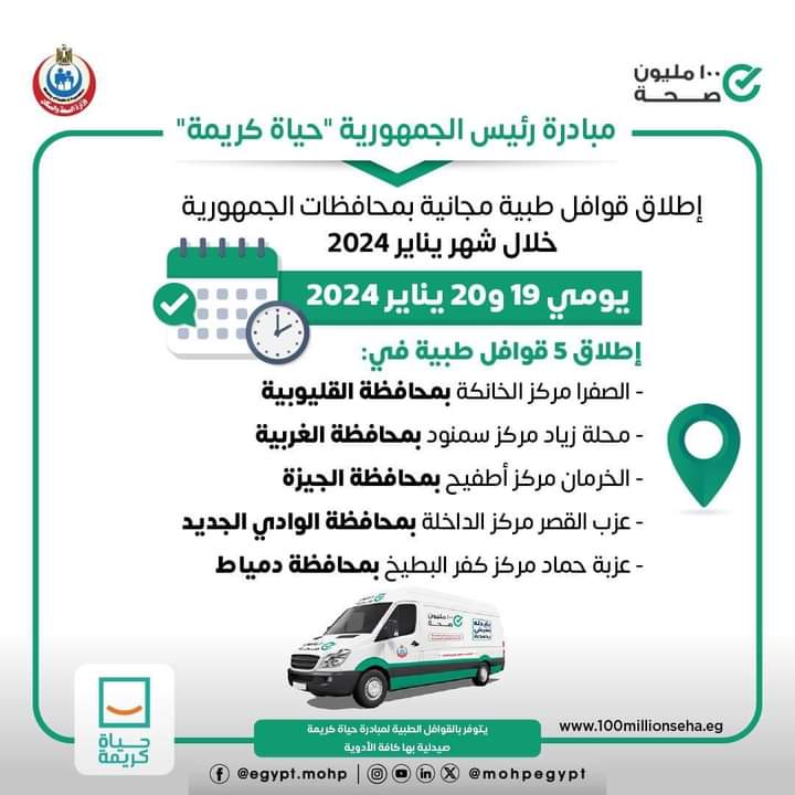 حياة كريمة تنظم قافلة طبية بواحة الداخلة في الوادي الجديد