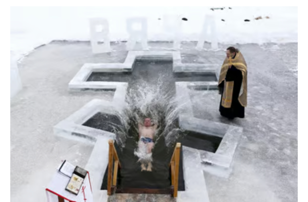 ويعتقد الروس أن الجليد يساعد على تطهير الروح وشفاء الجسم من الأمراض، كما أن الغطس في المياه المتجمدة يغفر لمن يغطس ذنوب العام الماضي.