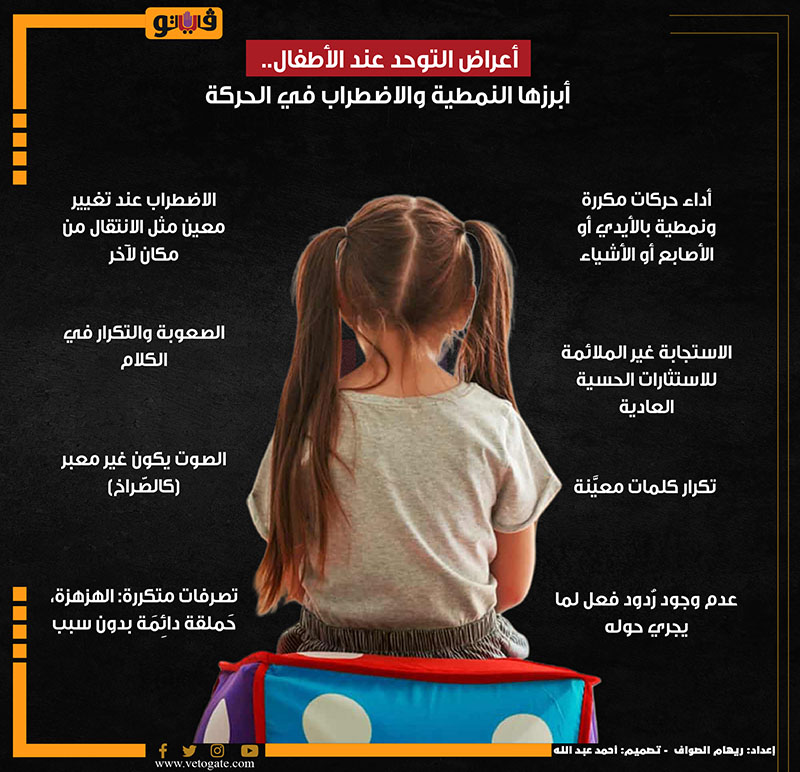 أعراض التوحد عند الأطفال، أبرزها النمطية والاضطراب في الحركة (انفوجراف) الأربعاء 07/فبراير/2024 - 02:15 م 2/7/2024 2:15:33 PM أعراض التوحد، فيتو ريهام الصواف شارك طباعة 18 حجم الخط شارك طباعة أعراض التوحد أطفال مرض التوحد أعراض التوحد عند البالغين اضطراب التوحد الاطفال مرضي التوحد