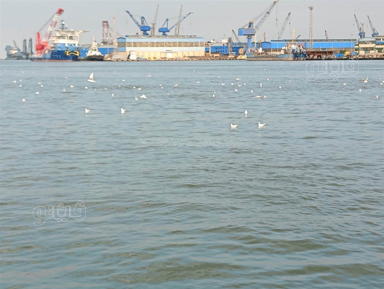 وترصد " فيتو خلال هذا المشهد إقبال المواطنين على إطعام طيور النورس التي تطير على ضفاف قناة السويس "