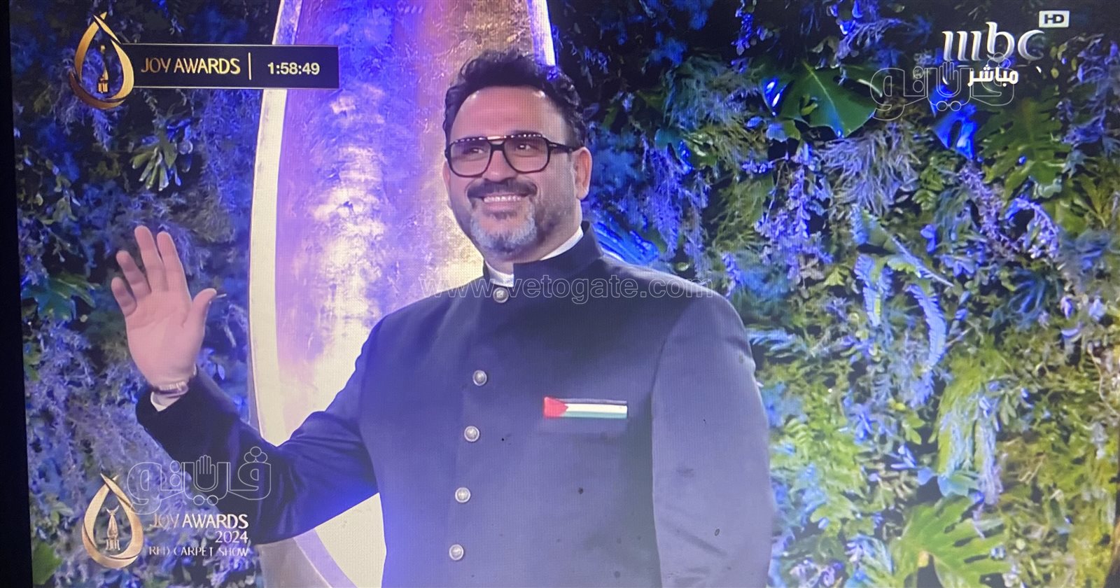 أكرم حسني يدعم غزة في مهرجان joy awards بهذه الطريقة